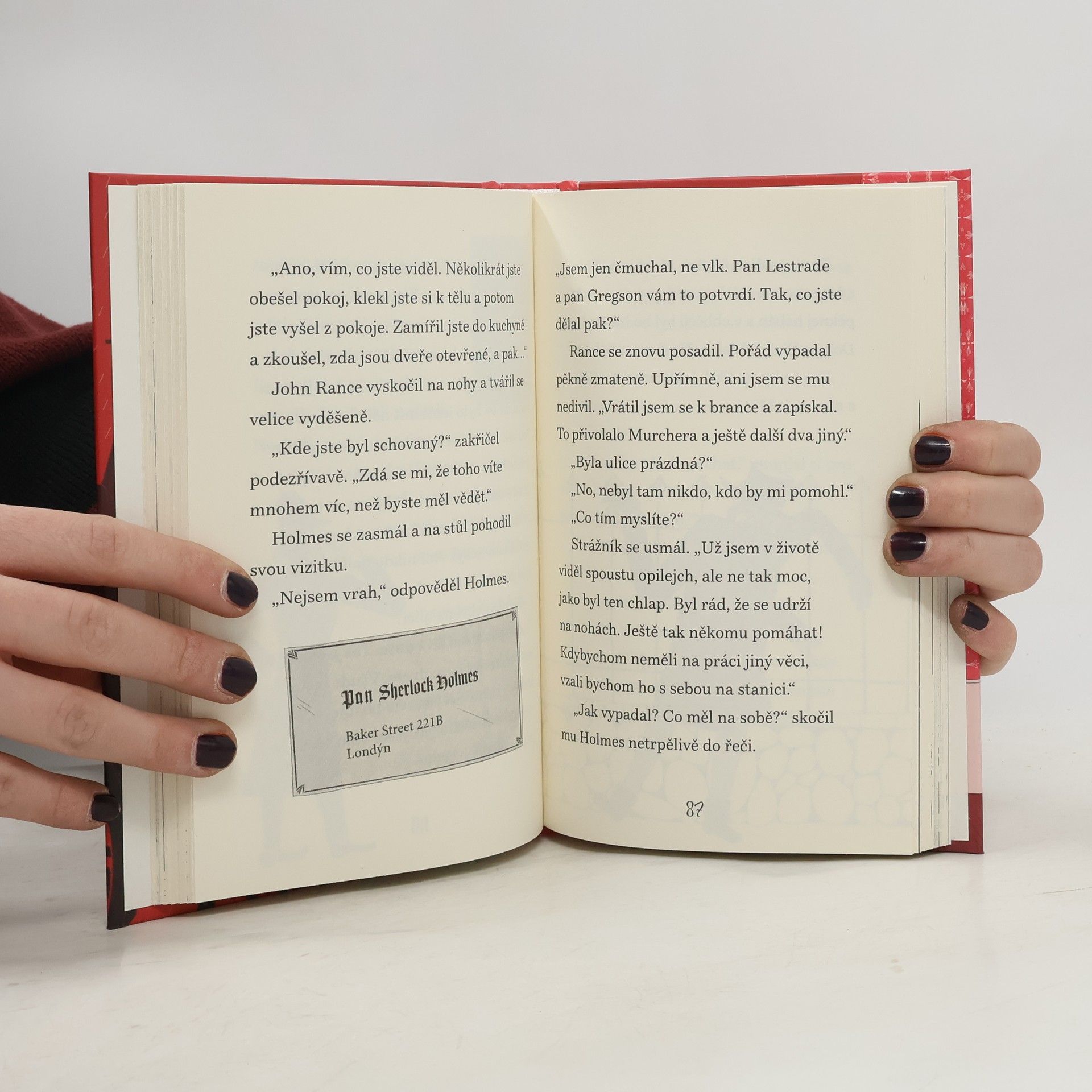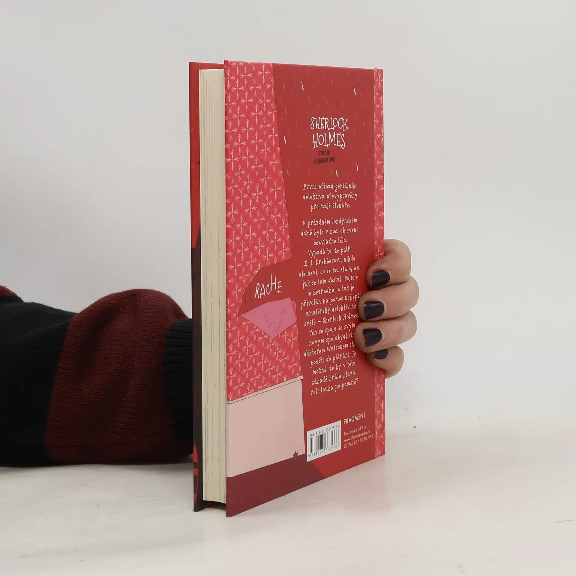 První případ geniálního detektiva převyprávěný pro malé čtenáře.V prázdném londýnském domě bylo v noci objeveno bezvládné tělo. Vypadá to, že patří E. J. Drebberovi, nikdo ale neví, co se mu stalo, ani jak se tam dostal. Policie je bezradná, a tak je přivolán na pomoc nejlepší amatérský detektiv na světě – Sherlock Holmes. Ten se spolu se svým…
