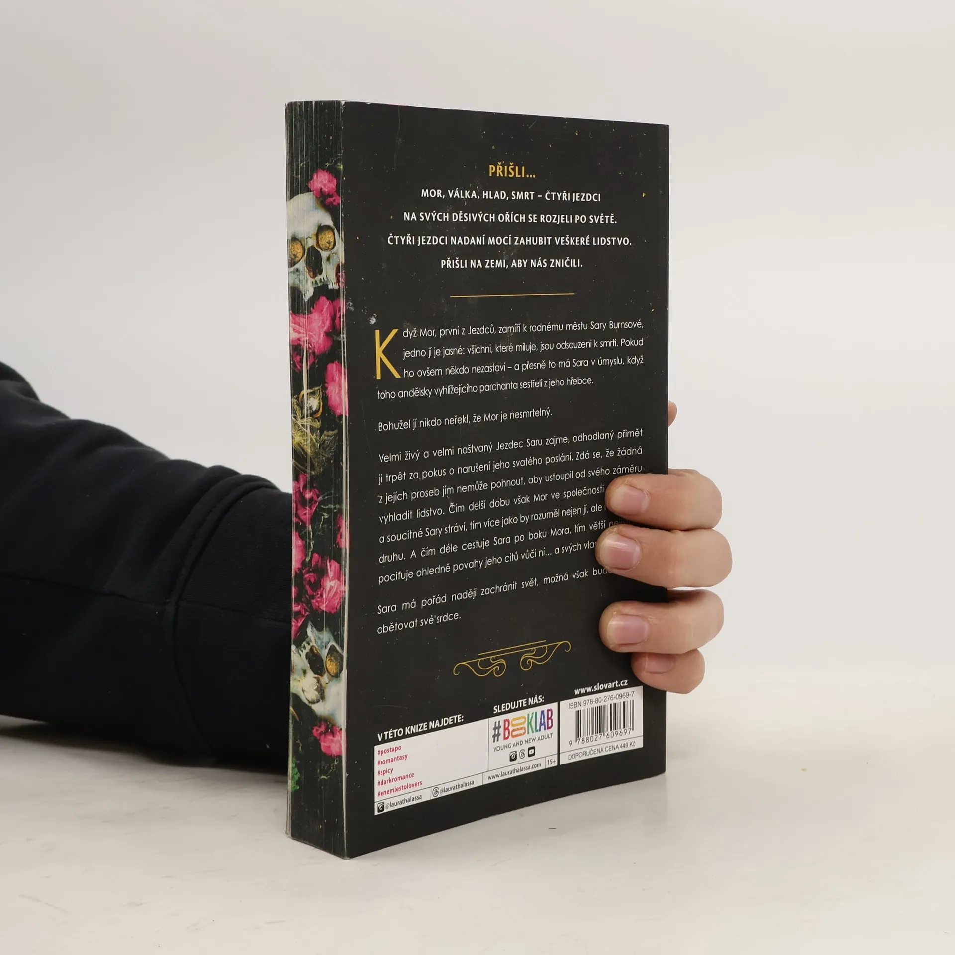 PŘIŠLI… MOR, VÁLKA, HLAD, SMRT - ČTYŘI JEZDCI NA SVÝCH DĚSIVÝCH OŘÍCH SE ROZJELI PO SVĚTĚ. ČTYŘI JEZDCI NADANÍ MOCÍ ZAHUBIT VEŠKERÉ LIDSTVO. PŘIŠLI NA ZEMI. PŘIŠLI NÁS ZNIČIT. Když Mor, první z Jezdců, zamíří k rodnému městu Sary Burnsové, jedno jí je jasné: všichni, které miluje, jsou odsouzeni k smrti. Pokud ho ovšem někdo nezastaví - a přesně to má Sara v úmyslu, když toho andělsky vyhlížejícího parchanta sestřelí z jeho hřebce. Bohužel jí nikdo neřekl, že Mor je nesmrtelný. Velmi živý a velmi naštvaný Jezdec Saru zajme, odhodlaný přimět ji trpět za pokus o narušení jeho svatého poslání. Zdá se, že žádná z jejích proseb jím nemůže pohnout, aby ustoupil od svého záměru vyhladit lidstvo. Čím delší dobu však Mor ve společnosti odvážné a soucitné Sary stráví, tím více jako by rozuměl nejen jí, ale i lidskému druhu. A čím déle cestuje Sara po boku Mora, tím větší nejistotu pociťuje ohledně povahy jeho citů vůči ní… a svých vlastních. Sara má pořád naději zachránit svět, možná však bude muset obětovat své srdce.