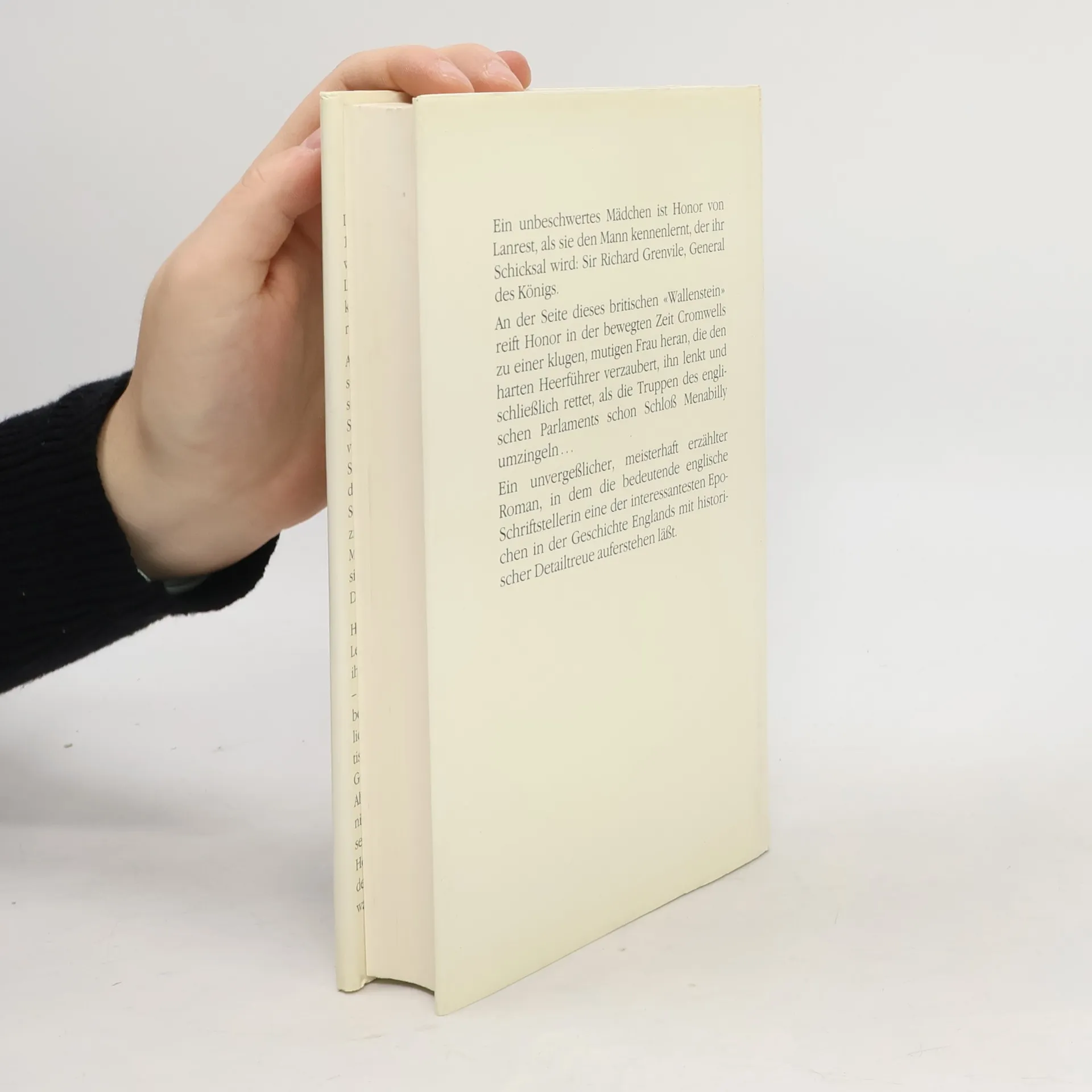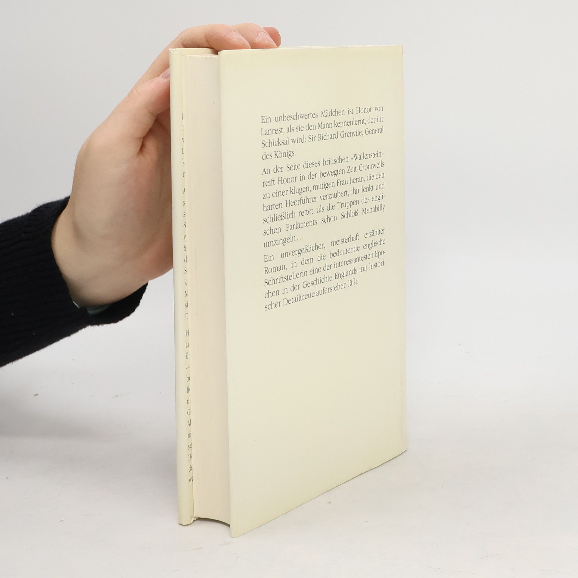 Ein Kobold von 18 Jahren ist Honor Harris von Lanrest, als sie beim Bankett auf Plymouth Castle den Mann kennen lernt, der ihr Schicksal wird: Sir Richard Grenvile, General des Königs. An diesem Wallenstein Albions und an dem Krieg, der das malerische Cornwall verwüstet, reift Honor zu einer klugen, mutigen Frau heran, die den harten Heerführer verzaubert, ihn lenkt und schließlich rettet, als die Truppen des englischen Parlaments schon Schloß Menabilly umzingeln. Seit ihrer REBECCA gilt Daphne du Maurier als eine Magierin der Feder. Dank ihrer Erzählkunst gewinnen Gang und Gestalten der Geschichte im Brennpunkt der Liebe zweier Augenzeugen so frischen Glanz, als blicke der Leser selbst über Honors Schulter auf das wind- und schlachtumtoste Cornwall nieder.