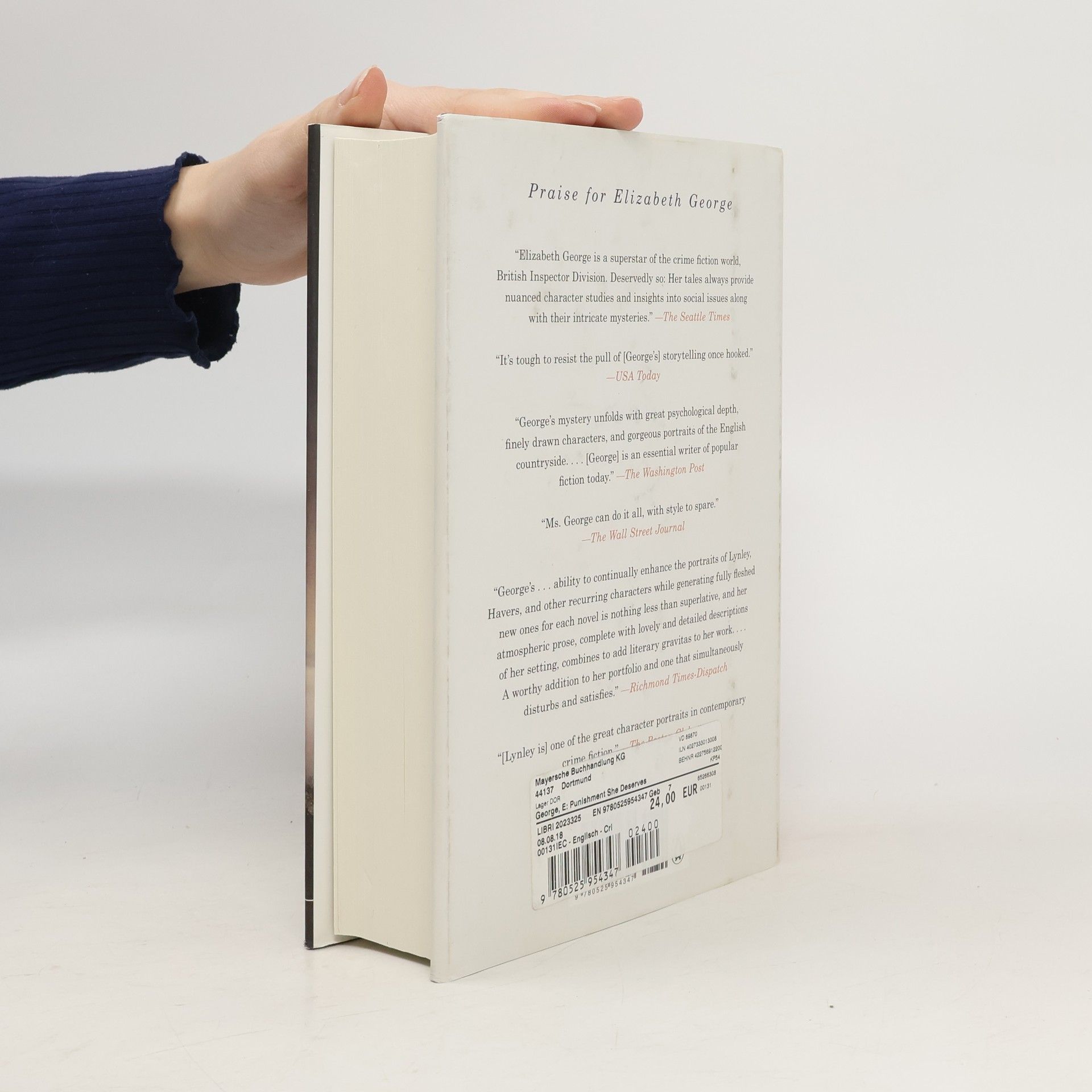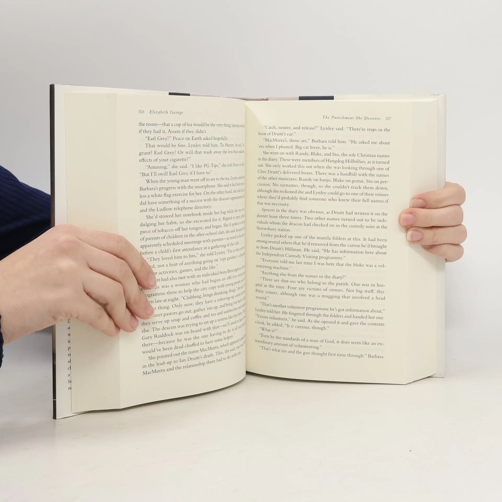 The cozy, bucolic town of Ludlow is stunned when one of its most revered and respected citizensIan Druitt, the local deaconis accused of a serious crime. Then, while in police custody, Ian is found dead. Did he kill himself? Or was he murdered? A masterful work of suspense, The Punishment She Deserves sets Detective Sergeant Barbara Havers and Inspector Thomas Lynley against one of their most intricate cases. Fans of the longtime series will love the many characters from Elizabeth Georges previous novels who join Lynley and Havers, and readers new to the series will quickly see why she is one of the most popular and critically acclaimed writers of our time.