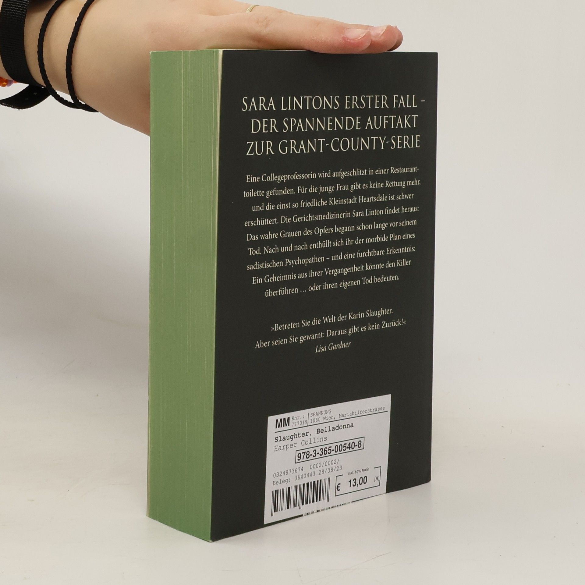 A star is born: Karin Slaughters brillianter Debütroman Eine Collegeprofessorin wird aufgeschlitzt in einer Restauranttoilette gefunden. Für die junge Frau gibt es keine Rettung mehr, und die einst so friedliche Kleinstadt Heartsdale ist schwer erschüttert. Die Gerichtsmedizinerin Sara Linton findet heraus: Das wahre Grauen begann schon lange vor dem Tod des Opfers. Nach und nach enthüllt sich ihr der morbide Plan eines sadistischen Psychopathen – und eine furchtbare Erkenntnis: Ein Geheimnis aus ihrer Vergangenheit könnte den Killer überführen … oder ihren eigenen Tod bedeuten. Sara Lintons erster Fall – der spannende Auftakt zur Grant-County-Serie Die Grant-County-Reihe umfasst sechs Bände. Heldin ist die toughe Sara Linton. Sie arbeitet im Städtchen Heartsdale im Grant County als Kinderärztin und Rechtsmedizinerin. Ihr Ehemann Jeffrey Tolliver ist der örtliche Polizeichef. 1 – Belladonna 2 – Vergiss mein nicht 3 – Dreh dich nicht um 4 – Schattenblume 5 – Gottlos 6 – Zerstört »Karin Slaughter zählt zu den talentiertesten und stärksten Spannungsautoren der Welt.« Yrsa Sigurðardóttir »Jeder neue Thriller von Karin Slaughter ist ein Anlass zum Feiern!« Kathy Reichs
