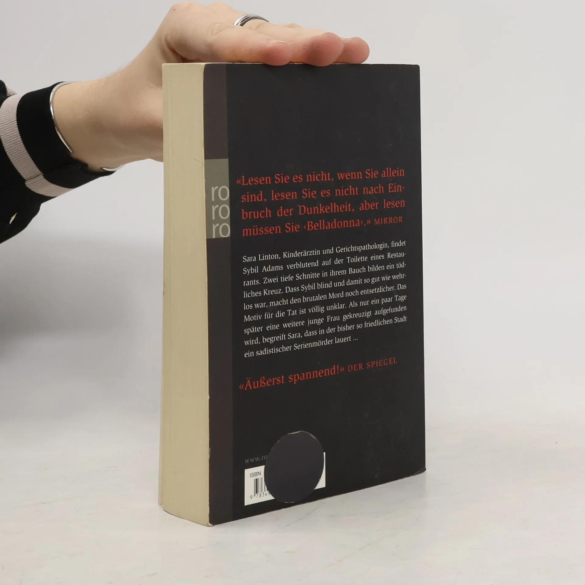 «Lesen Sie es nicht, wenn Sie allein sind, lesen Sie es nicht nach Einbruch der Dunkelheit, aber lesen müssen Sie ‹Belladonna›.» (Mirror)Sara Linton, Kinderärztin und Gerichtspathologin, findet Sybil Adams verblutend auf der Toilette eines Restaurants. Zwei tiefe Schnitte in ihrem Bauch bilden ein tödliches Kreuz. Dass Sybil blind und damit so gut wie wehrlos war, macht den brutalen Mord noch entsetzlicher. Das Motiv für die Tat ist völlig unklar. Als nur ein paar Tage später eine weitere junge Frau gekreuzigt aufgefunden wird, begreift Sara, dass in der bisher so friedlichen Stadt ein sadistischer Serienmörder lauert...«Äußerst spannend!» DER SPIEGEL