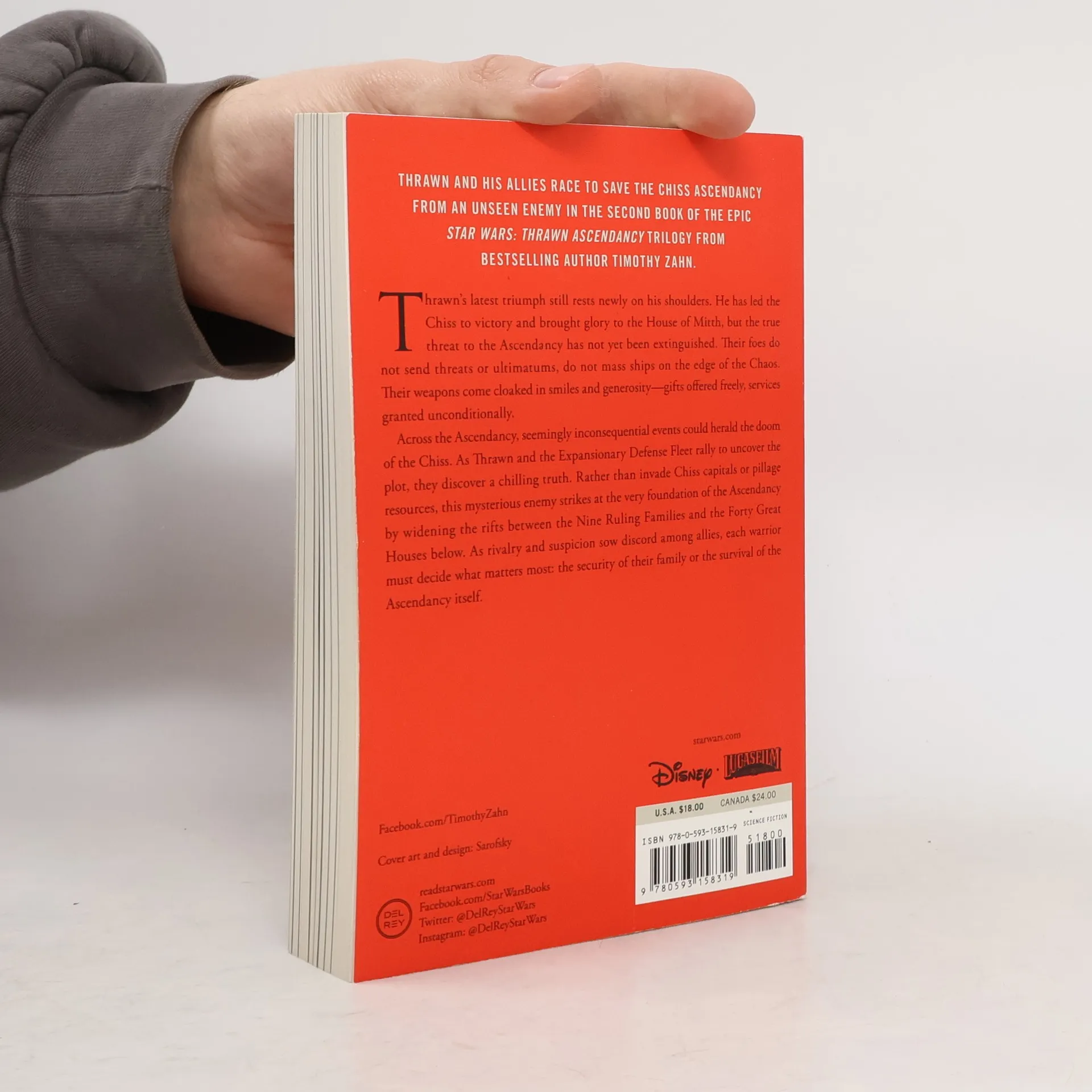 NEW YORK TIMES BESTSELLER • Thrawn and his allies race to save the Chiss Ascendancy from an unseen enemy in the second book in the epic Star Wars: Thrawn Ascendancy trilogy from bestselling author Timothy Zahn. Thrawn’s latest triumph still rests newly on his shoulders. He has led the Chiss to victory and brought glory to the House of Mitth, but the true threat to the Ascendancy has not yet been extinguished. Their foes do not send threats or ultimatums, do not mass ships on the edge of the Chaos. Their weapons come cloaked in smiles and generosity: Gifts offered freely. Services granted unconditionally. Across the Ascendancy, seemingly inconsequential events could herald the doom of the Chiss. As Thrawn and the Expansionary Defense Fleet rally to uncover the plot, they discover a chilling truth: Rather than invade Chiss capitals or pillage resources, their enemy strikes at the very foundation of the Ascendancy, seeking to widen the rifts between the Nine Ruling Families and the Forty Great Houses below. As rivalry and suspicion sow discord among allies, each warrior must decide what matters most to them: the security of their family or the survival of the Ascendancy itself.