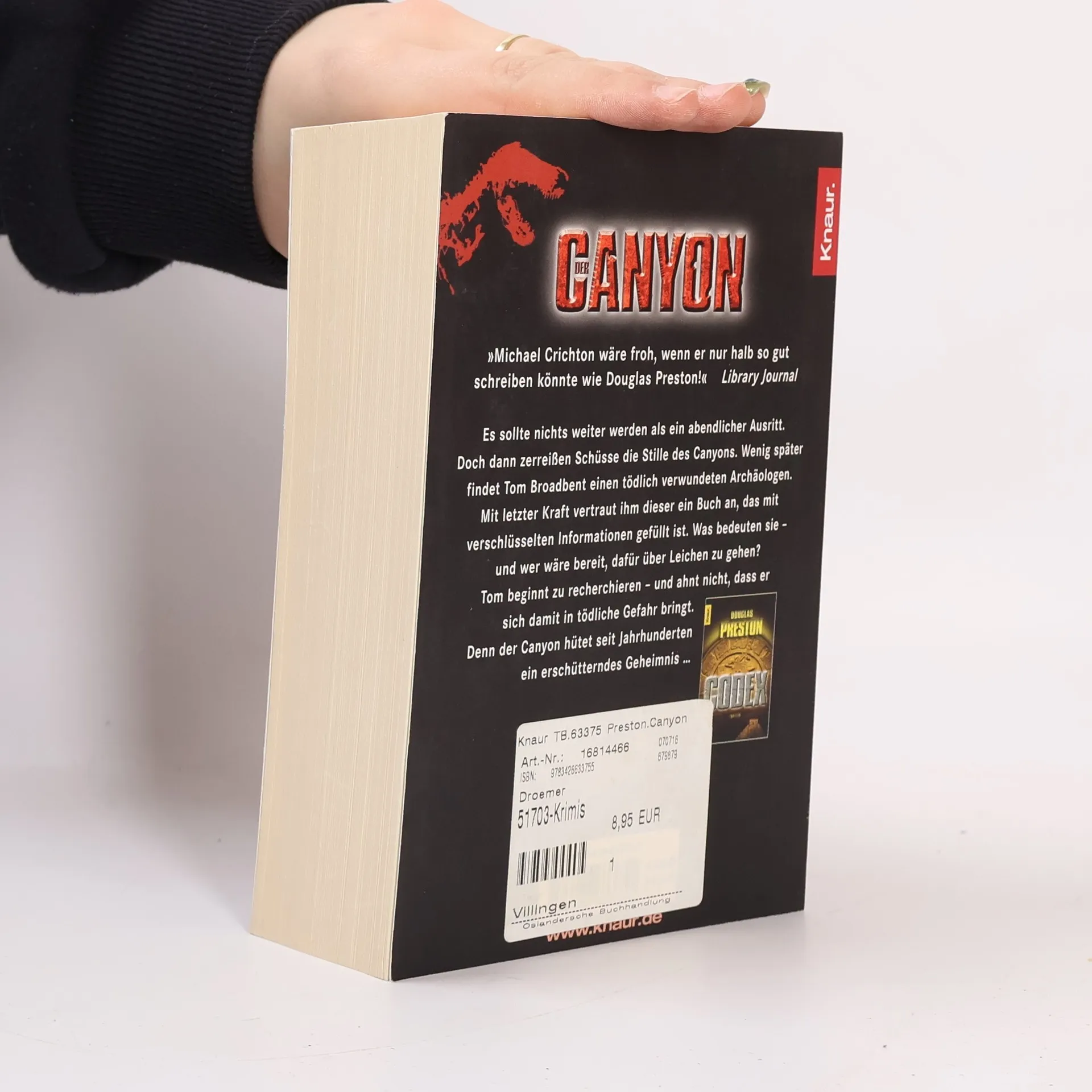 Es sollte nichts weiter werden als ein abendlicher Ausritt. Doch dann zerreißen Schüsse die Stille des Canyons. Wenig später findet Tom Broadbent einen tödlich verwundeten Archäologen. Mit letzter Kraft vertraut ihm dieser ein Buch an, das mit verschlüsselten Informationen gefüllt ist. Was bedeuten sie – und wer wäre bereit, dafür über Leichen zu gehen? Tom beginnt zu recherchieren – und ahnt nicht, dass er sich damit in tödliche Gefahr bringt. Denn der Canyon hütet seit Jahrhunderten ein erschütterndes Geheimnis …Vom Autor des Bestsellers »Der Codex«!Der Canyon von Douglas Preston: Spannung pur!