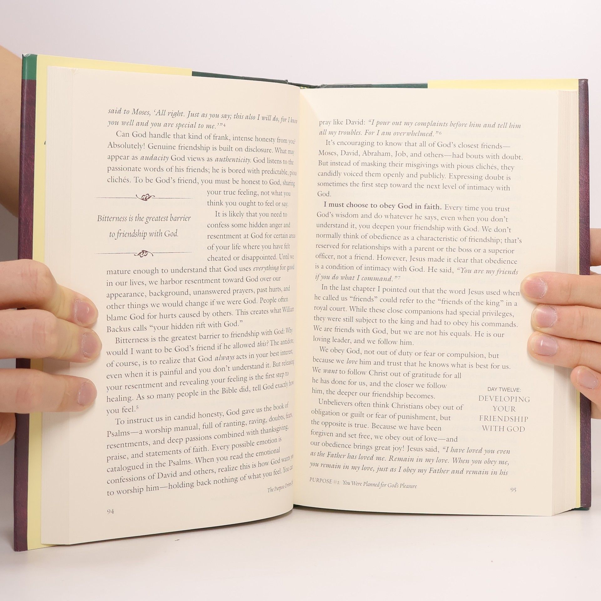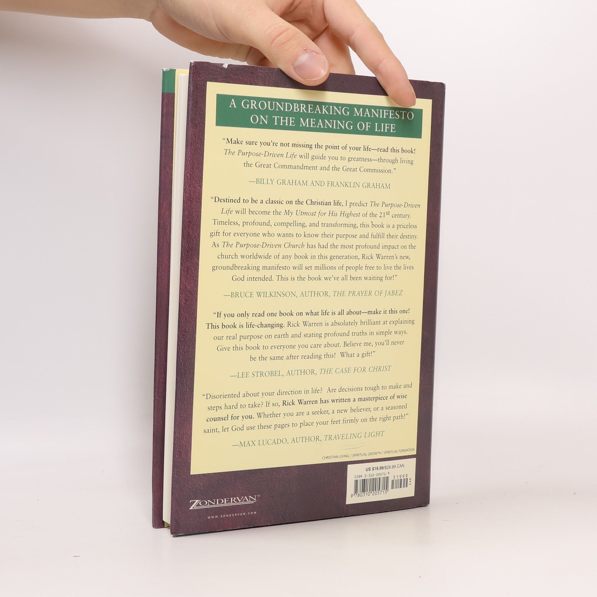 A #1 New York Times bestseller, The Purpose Driven Life will help you understand why you are alive and reveal Gods amazing plan for you both here and now, and for eternity. Rick Warren will guide you through a personal forty-day spiritual journey that will transform your answer to life's most important question: What on earth am I here for? Knowing Gods purpose for creating you will reduce your stress, focus your energy, simplify your decisions, give meaning to your life, and most important, prepare you for eternity. Movie stars and political leaders aren't the only ones turning to Rick Warren for spiritual guidance. Millions of people from NBA and LPGA players to corporate executives to high school students to prison inmates meet regularly to discuss The Purpose Driven Life.