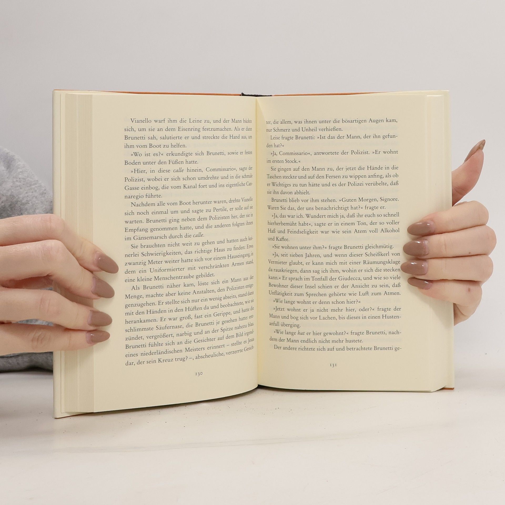 Eine Ermittlung gegen Brunetti? Unmöglich. Zwar geht es nur um seine Eigentumswohnung und die Baubewilligung, doch Brunetti muß das Schlimmste befürchten. Als der zuständige Beamte wenig später von einem Baugerüst stürzt, weiß Brunetti mit Sicherheit, dass es keineswegs nur um seine Wohnung geht. Seine Ermittlungen führen ihn in die venezianische Drogenszene, zu Wucher und Korruption. Nur FEINE FREUNDE können da noch helfen.