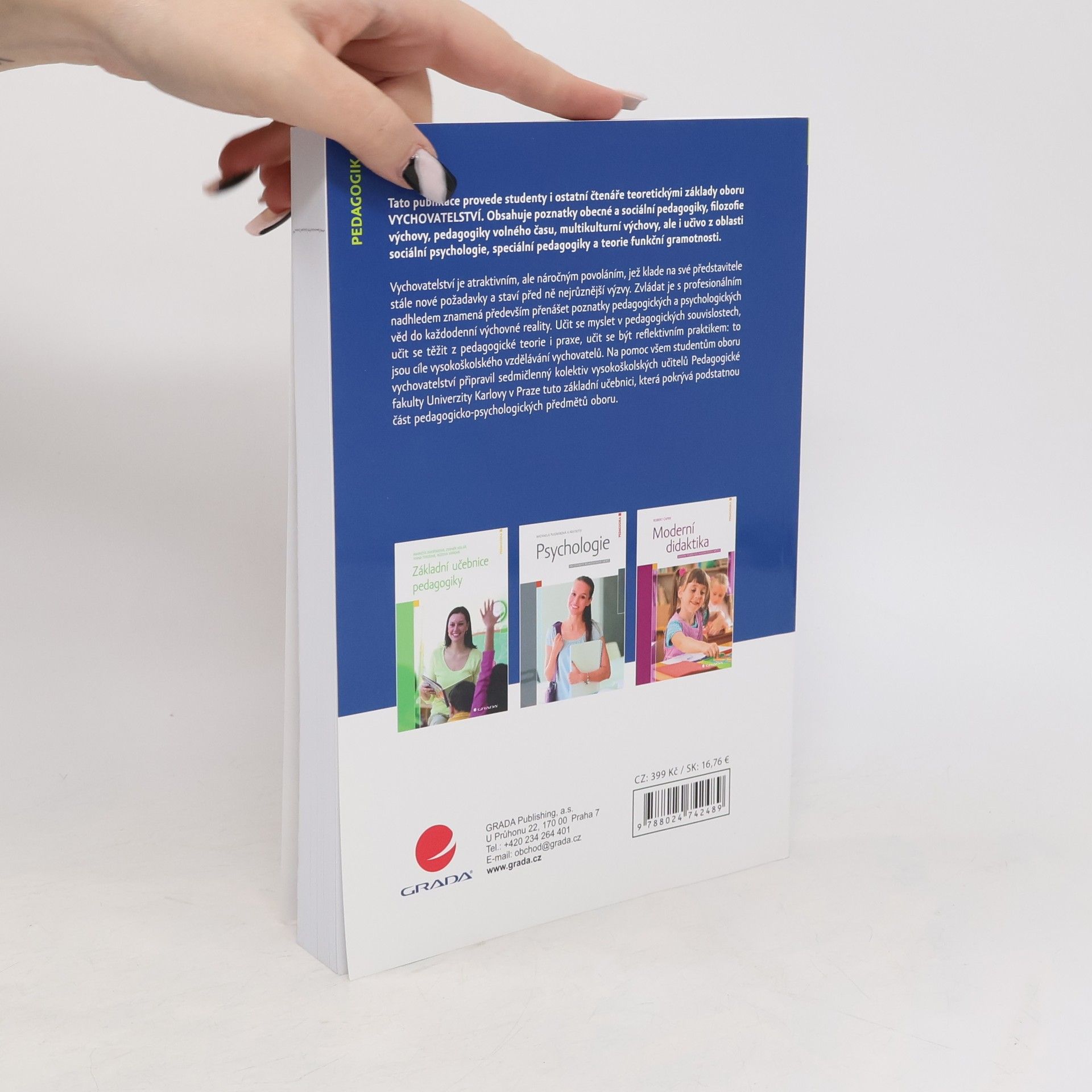 Tato publikace provede studenty i ostatní čtenáře teoretickými základy oboru VYCHOVATELSTVÍ. Obsahuje poznatky obecné a sociální pedagogiky, filozofie výchovy, pedagogiky volného času, multikulturní výchovy, ale i učivo z oblasti sociální psychologie, speciální pedagogiky a teorie funkční gramotnosti.