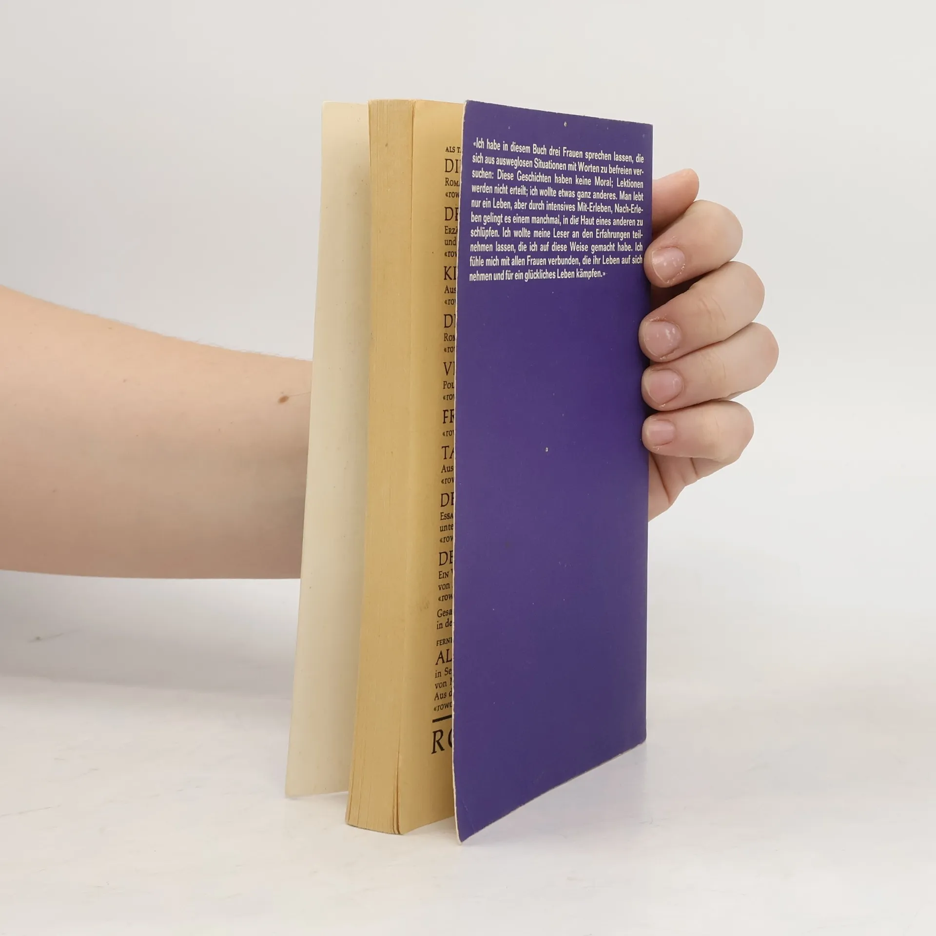 «Ich habe in diesem Buch drei Frauen sprechen lassen, die sich aus ausweglosen Situationen mit Worten zu befreien versuchten: Diese Geschichten haben keine Moral; Lektionen werden nicht erteilt; ich wollte etwas ganz anderes. Man lebt nur ein Leben, aber durch intensives Mit-Erleben, Nach-Erleben gelingt es einem manchmal, in die Haut eines anderen zu schlüpfen. Ich wollte meine Leser an den Erfahrungen teilnehmen lassen, die ich auf diese Weise gemacht habe. Ich fühle mich mit allen Frauen verbunden, die ihr Leben auf sich nehmen und für ein glückliches Leben kämpfen.»