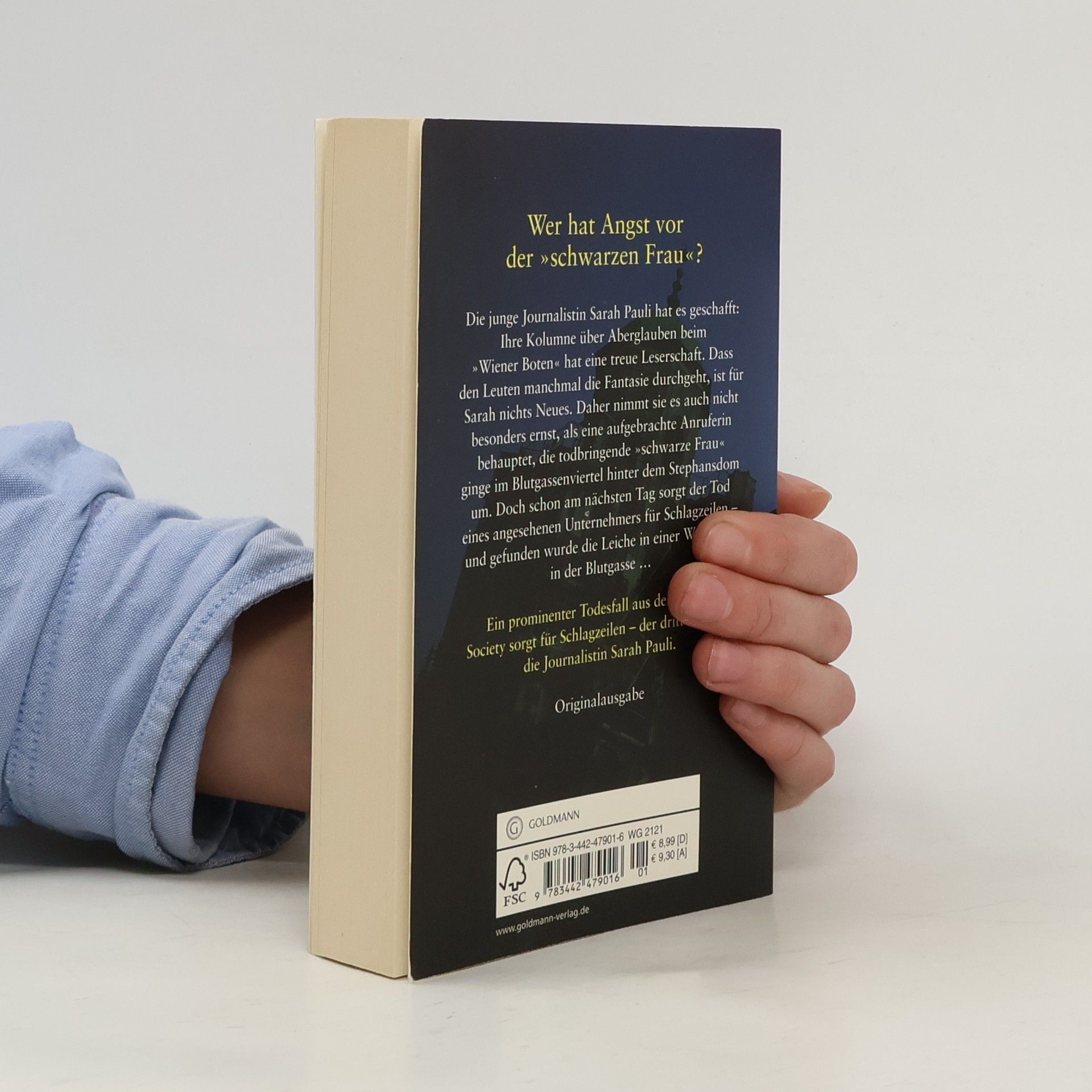 Ein Todesfall aus der Wiener Society sorgt für Schlagzeilen ... Die junge Journalistin Sarah Pauli hat es geschafft: Ihre Kolumne über Aberglauben beim „Wiener Boten“ hat eine treue Leserschaft. Dass den Leuten manchmal die Fantasie durchgeht, ist für Sarah nichts Neues, daher nimmt sie es auch nicht besonders ernst, als eine aufgebrachte Anruferin behauptet, die todbringende „schwarze Frau“ ginge im Blutgassenviertel hinter dem Stephansdom um. Doch schon am nächsten Tag sorgt der Tod eines angesehenen Unternehmers für Schlagzeilen – und gefunden wurde die Leiche in einer Wohnung in der Blutgasse …