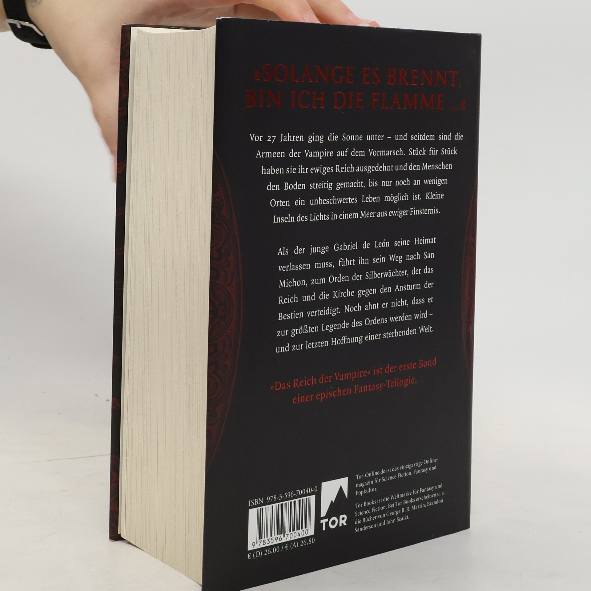 Der „Name des Windes“ meets „Interview mit einem Vampir“ - „Das Reich der Vampire“ ist der Auftaktband der neuen, epischen Fantasy-Serie von Nevernight-Autor Jay Kristoff. Gleich nach Erscheinen stand „Das Reich der Vampire“ auf der New-York-Times- und der Sunday-Times Bestsellerliste. Vor 27 Jahren ging die Sonne unter – und seitdem sind die Armeen der Vampire auf dem Vormarsch. Stück für Stück haben sie ihr ewiges Reich ausgedehnt und den Menschen den Boden streitig gemacht, bis nur noch an wenigen Orten ein unbeschwertes Leben möglich ist. Kleine Inseln des Lichts in einem Meer aus ewiger Finsternis. Als der junge Gabriel de León sein Heimatdorf verlassen muss, führt ihn sein Weg nach San Michon, zum Orden der Silberwächter, einer heiligen Bruderschaft, die das Reich und die Kirche gegen den Ansturm der Bestien verteidigt. Und noch ahnt er nicht, dass er zur größten Legende des Ordens werden wird – und zur letzten Hoffnung einer sterbenden Welt. Tolle Ausstattung: Hardcover im Schutzumschlag mit zahlreichen Illustrationen von Bon Orthwick und zwei farbigen Vorsatzkarten. Für Leser*innen von Sarah J. Maas, V. E. Schwab, Leigh Bardugo und Fans von Vampire – The Masquerade oder Castlevania und The Last of Us.
