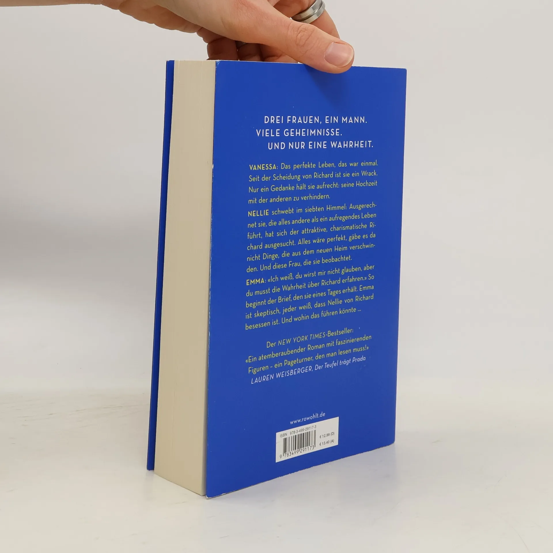 Drei Frauen, ein Mann. Viele Geheimnisse. Und nur eine Wahrheit.Vanessa: Das perfekte Leben, das war einmal. Seit der Scheidung von Richard ist sie ein Wrack. Nur ein Gedanke hält sie aufrecht: seine Hochzeit mit der anderen zu verhindern.Nellie schwebt im siebten Himmel: Ausgerechnet sie, die alles andere als ein aufregendes Leben führt, hat sich der attraktive, charismatische Richard ausgesucht. Alles wäre perfekt, gäbe es da nicht Dinge, die aus dem neuen Heim verschwinden. Und diese Frau, die sie beobachtet.Emma: «Ich weiß, du wirst mir nicht glauben, aber du musst die Wahrheit über Richard erfahren.» So beginnt der Brief, den sie eines Tages erhält. Emma ist skeptisch, jeder weiß, dass Nellie von Richard besessen ist. Und wohin das führen könnte …Der New York Times-Bestseller!