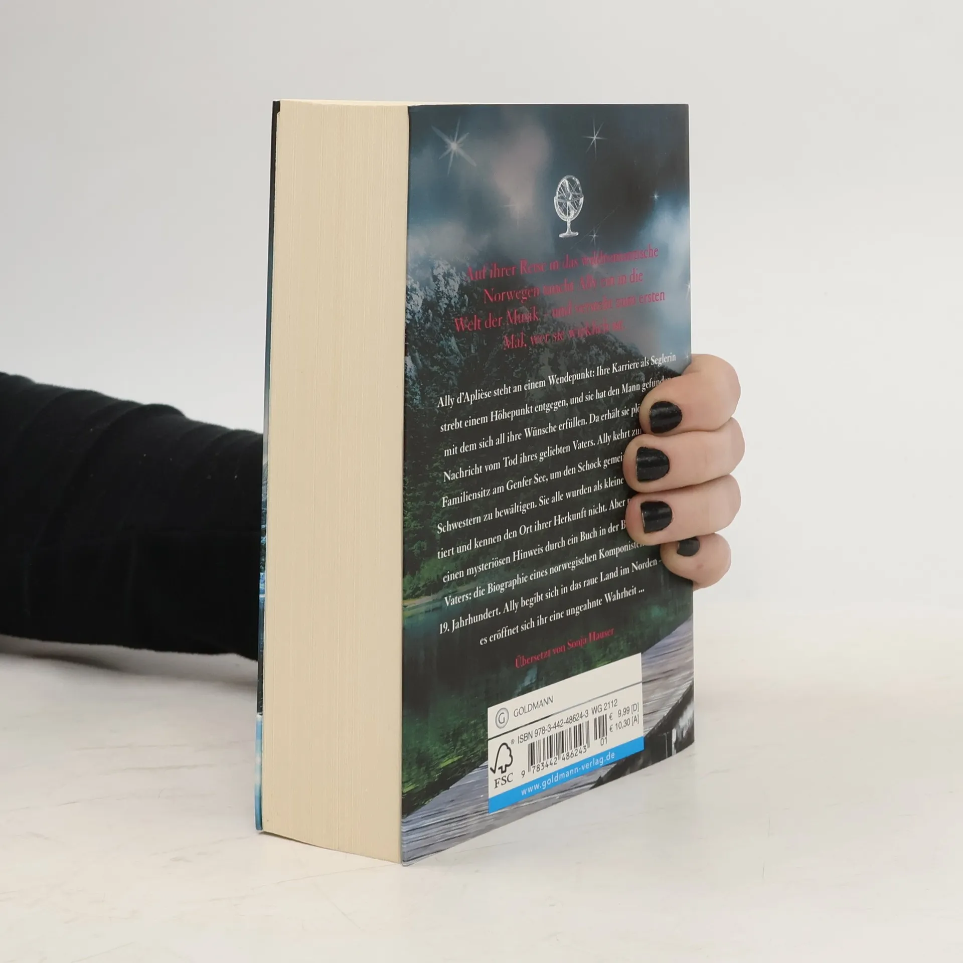 Ally d’Aplièse steht an einem Wendepunkt: Ihre Karriere als Seglerin strebt einem Höhepunkt entgegen, und sie hat den Mann gefunden, mit dem sich all ihre Wünsche erfüllen. Da erhält sie völlig unerwartet die Nachricht vom Tod ihres geliebten Vaters. Ally kehrt zurück zum Familiensitz am Genfer See, um den Schock gemeinsam mit ihren Schwestern zu bewältigen. Sie alle wurden als kleine Mädchen adoptiert und kennen den Ort ihrer Herkunft nicht. Aber nun erhält Ally einen mysteriösen Hinweis durch ein Buch in der Bibliothek ihres Vaters – die Biographie eines norwegischen Komponisten aus dem 19. Jahrhundert. Allys Neugier ist geweckt, und sie begibt sich auf die Reise in das raue Land im Norden. Dort wird sie ergriffen von der Welt der Musik, mit der sie tiefer verbundener ist, als sie es je hätte ahnen können. Und Ally begreift zum ersten Mal im Leben, wer sie wirklich ist ... Der zweite Band aus der Bestseller-Serie um die sieben Schwestern.