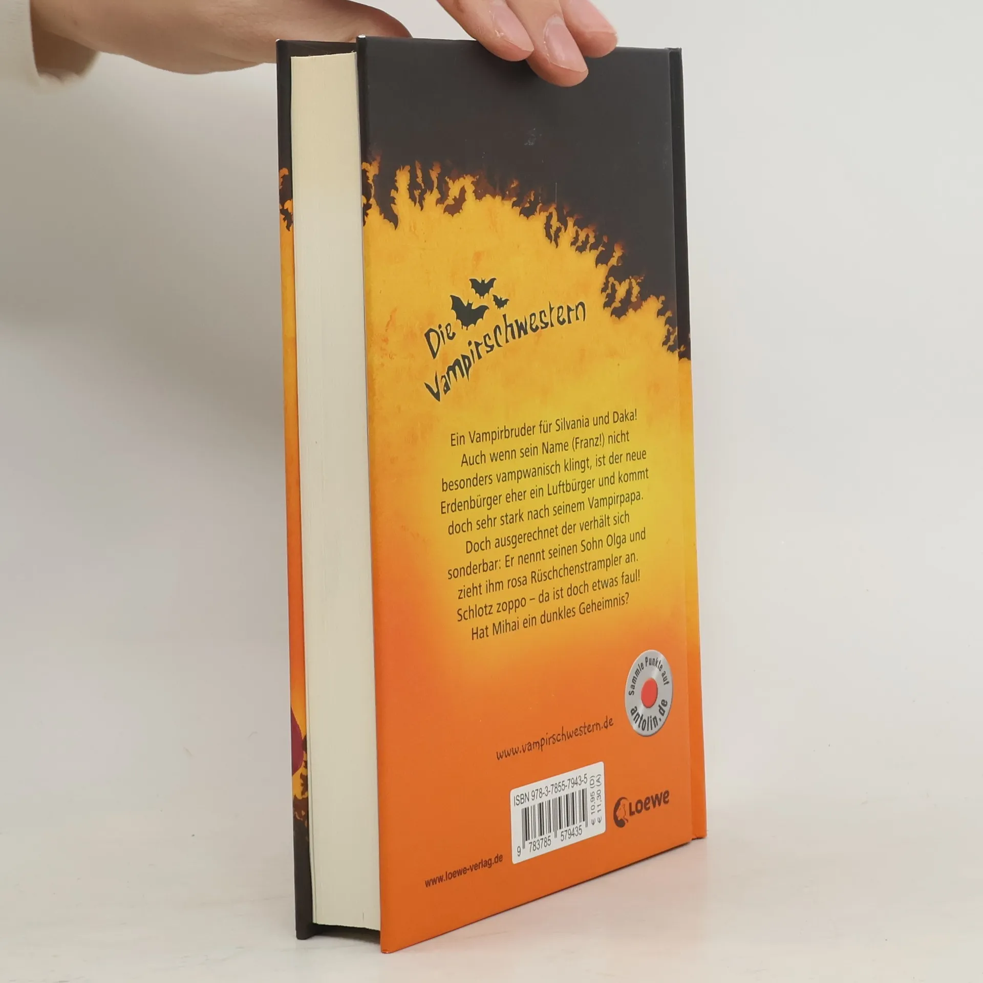 Ein Vampirbruder für Silvania und Daka! Auch wenn sein Name (Franz!) nicht besonders vampwanisch klingt, ist der neue Erdenbürger eher ein Luftbürger und kommt doch sehr stark nach seinem Vampirpapa. Doch ausgerechnet der verhält sich sonderbar: Er nennt seinen Sohn Olga und zieht ihm rosa Rüschchenstrampler an. Schlotz zoppo – da ist doch etwas faul! Hat Mihai ein dunkles Geheimnis? Franziska Gehms lustige Reihe für Mädchen ab 10 Jahren begleitet die halb-vampirischen Teenie-Schwestern Daka und Silvania durch ihren Alltag mit Eltern und Schule, aber auch durch Abenteuer mit bissigen Fledermäusen und der ersten Liebe. Unterstützt werden die paranormalen Heldinnen von Helene, deren Freundschaft allen Unterschieden, Hindernissen und Gefahren trotzt.