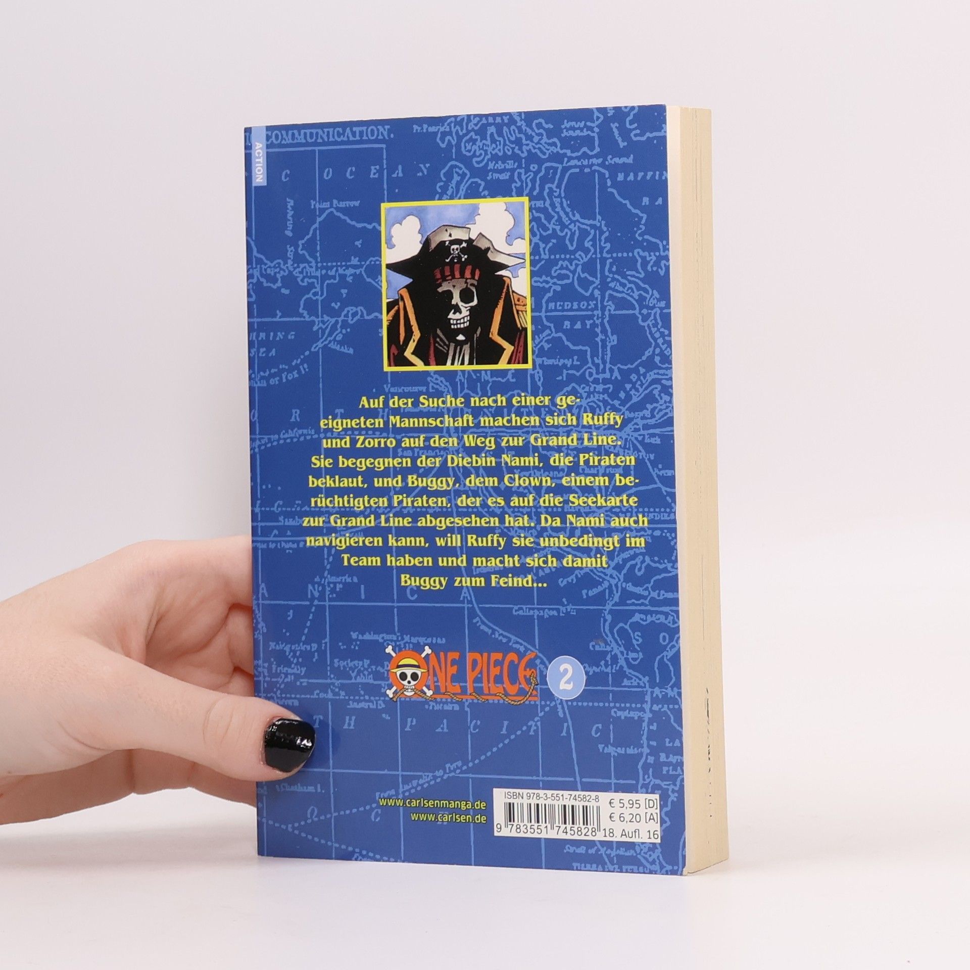 Der beliebteste Manga der Welt! Erlebe die Geschichte des zukünftigen Königs der Piraten in einer unvergleichlichen Geschichte voller Action, Abenteuer, Dramatik, Freundschaft und Humor. Mit über 500 Millionen verkauften Bänden weltweit ist One Piece die meistverkaufte Mangaserie der Geschichte! Auf der Suche nach einer geeigneten Mannschaft macht sich Ruffy mit Zorro zusammen auf den Weg zur Grand Line. Doch auf dem Weg begegnen sie der Diebin Nami, die Piraten beklaut und Buggy, dem Clown, einem berüchtigten Piraten, die Seekarte zur Grand Line klauen will. Da Nami auch navigieren kann, will Ruffy sie unbedingt im Team haben und macht sich damit Buggy zum Feind... Für Fans von Naruto, Dragon Ball, My Hero Academia und Fairy Tail! Weitere Infos: - Anime-Serie bei Crunchyroll, Wakanim und Anime on Demand - bisher 13 Anime-Kinofilme - DVD/BD bei Kazé - Live-Action-Netflixserie geplant - diverse Videospiele - ab 10 Jahren