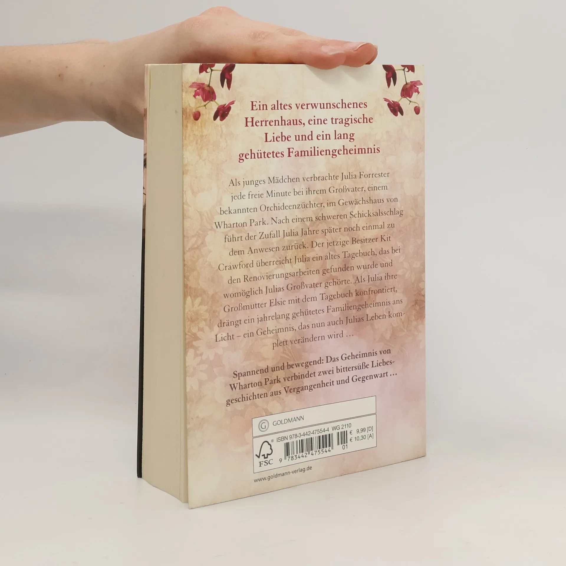 Jedes Haus hat sein Geheimnis. Und jede Liebe ihren Preis Als junges Mädchen verbrachte Julia Forrester jede freie Minute bei ihrem Großvater, einem bekannten Orchideenzüchter, im Gewächshaus von Wharton Park. Nach einem schweren Schicksalsschlag führt der Zufall Julia Jahre später noch einmal zu dem Anwesen zurück. Der jetzige Besitzer Kit Crawford überreicht ihr ein altes Tagebuch, das bei den Renovierungsarbeiten gefunden wurde und womöglich Julias Großvater gehörte. Als Julia ihre Großmutter Elsie mit dem Tagebuch konfrontiert, drängt ein jahrelang gehütetes Familiengeheimnis ans Licht, das auch Julias Leben komplett verändern wird …