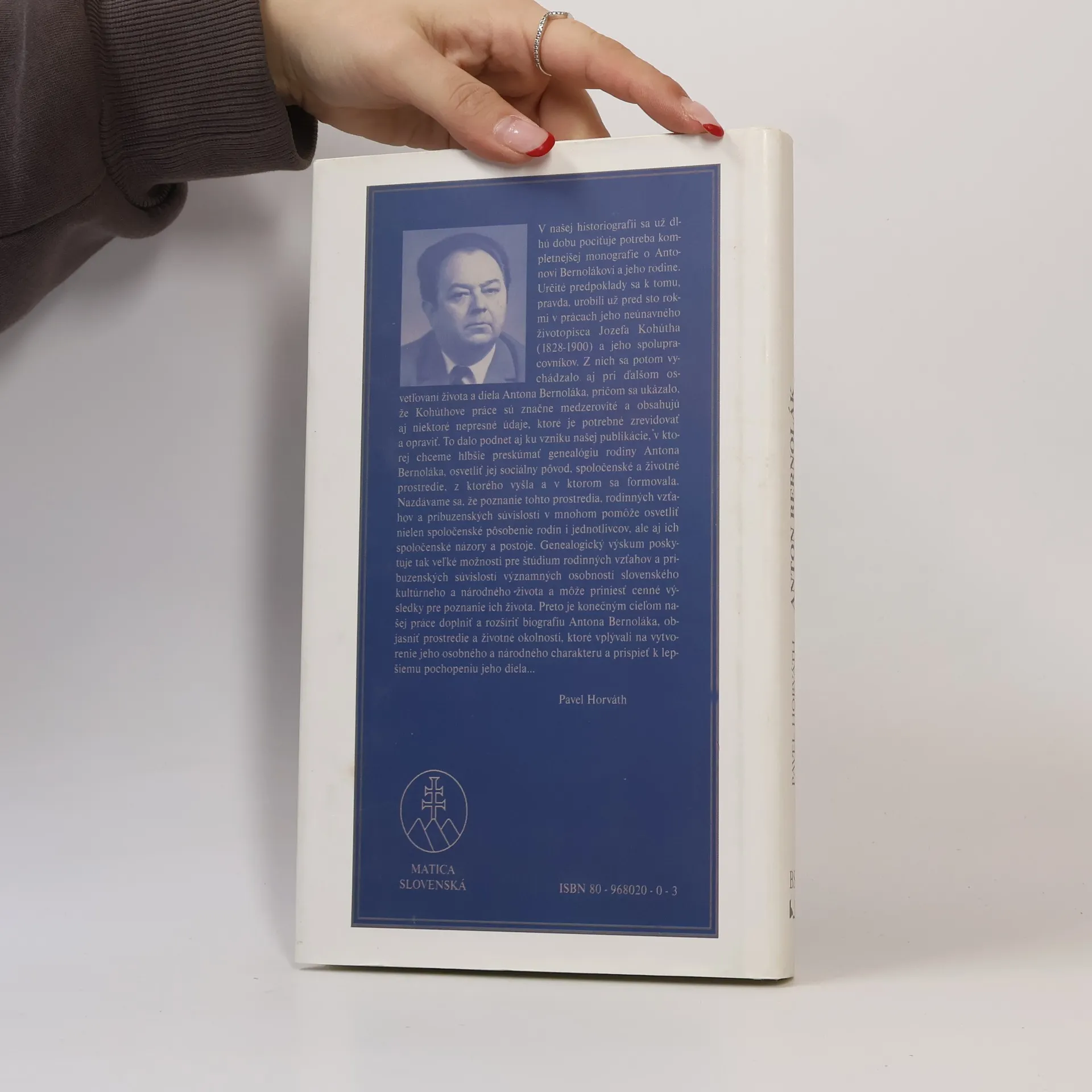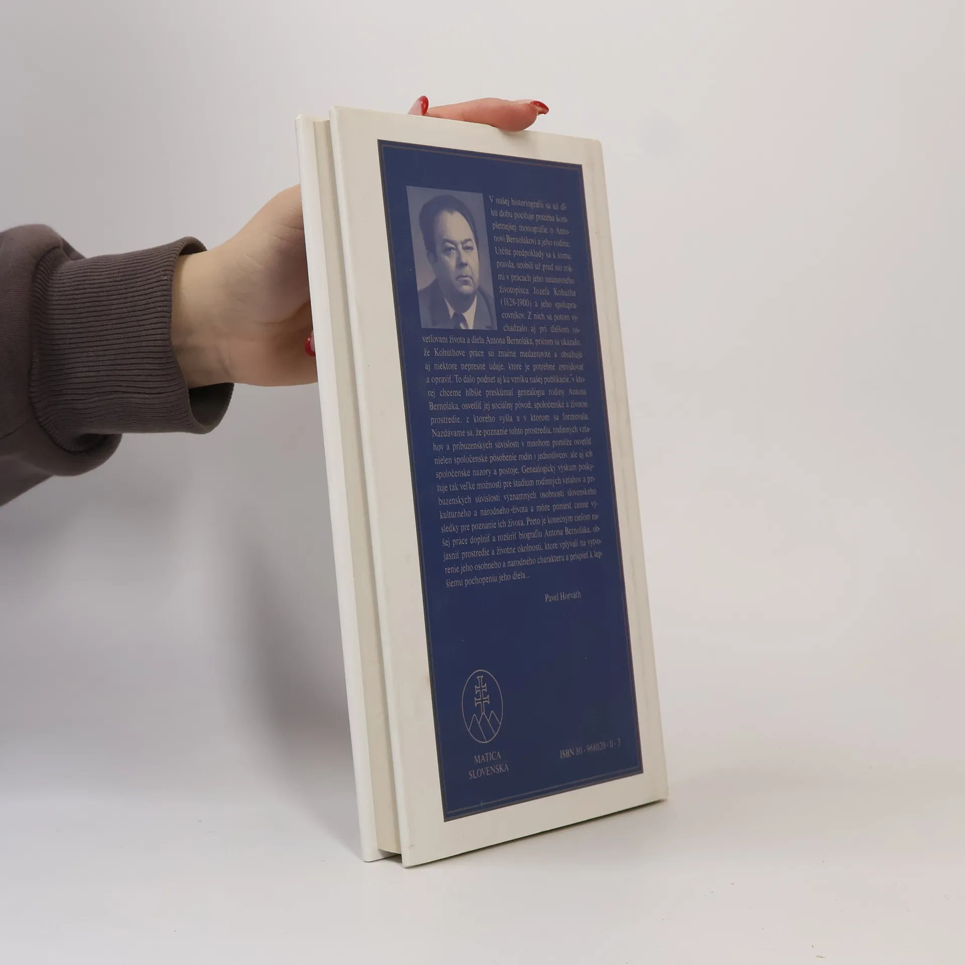 Komplexná monografia o živote a diele Antona Bernoláka - základnej osobnosti slovenského národného vývoja. V knihe sú podrobne zachytené nielen jeho životné osudy a osudy jeho diela, ale aj rodinné prostredie, z ktorého vyšiel, školy, na ktorých sa vzdelával a aj miesta, kde ako kňaz pôsobil v pastorácii alebo v cirkevných funkciách. Okrem toho je venovaná pozornosť aj osobnostnému a národnému profilu Antona Bernoláka, jeho rukopisnej a knižnej pozostalosti, posmrtným osudom jeho diela a nakoniec ucteniu jeho pamiatky vo forme rôznych pamätníkov alebo prejavov v umeleckej literatúre a vo výtvarnom umení.