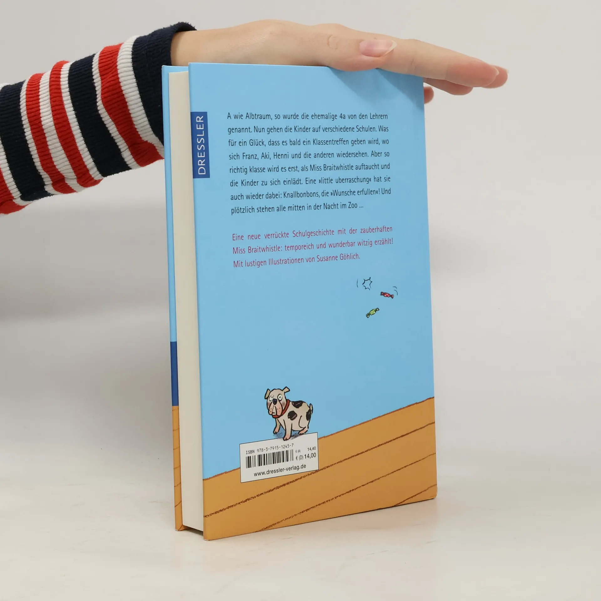 YIPPIE! Miss Braitwhistle ist wieder da! A wie Albtraum, so wurde die ehemalige 4a genannt. Doch nun gehen alle auf verschiedene Schulen. Was für ein Glück, dass ein Klassentreffen ansteht, wo sich Franz, Aki, Pauline und die anderen endlich wiedersehen. Aber so richtig klasse wird es erst, als Miss Braitwhistle, die zauberhafte Ex-Lehrerin, auftaucht und die Kinder zu sich einlädt. Eine „littleuberraschung“ hat sie auch wieder parat: Knallbonbons, die „Wunsche erfullen“! Und plötzlich stehen alle mitten in der Nacht im Zoo. Schulalltag - das Lieblingsthema von Sabine Ludwig und ihren kleinen Lesern (und großen Vorlesern): Ein wunderbares Wiedersehen im vierten Band der Bestseller-Serie, unverwechselbar sprachwitzig und erfrischend erzählt, mit Illustrationen von Susanne Göhlich.