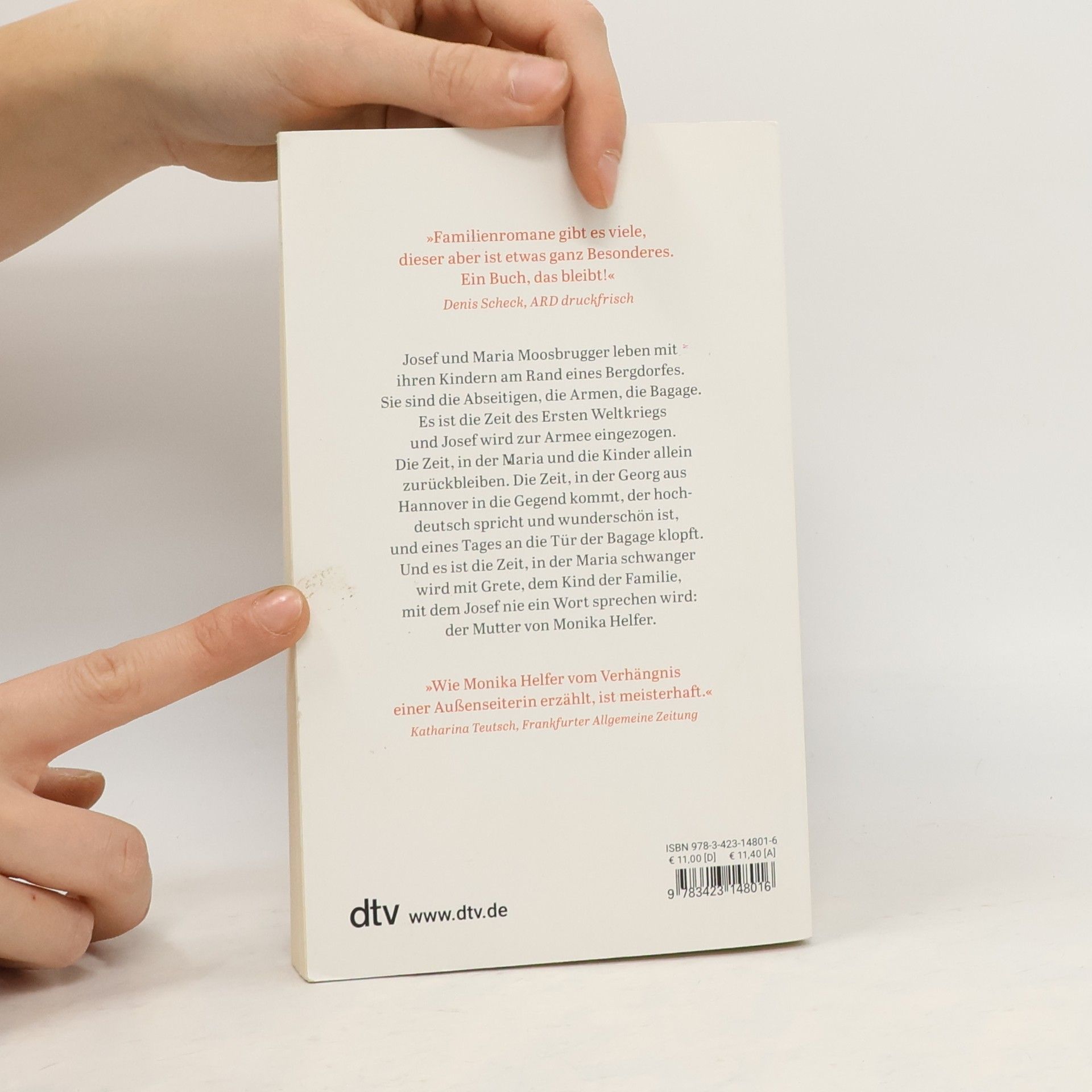 »Ein Buch, das bleibt!« Denis Scheck in ›ARD druckfrisch‹ Josef und Maria Moosbrugger leben mit ihren Kindern am Rand eines Bergdorfes. Sie sind die Abseitigen, die Armen, die Bagage. Es ist die Zeit des Ersten Weltkriegs und Josef wird zur Armee eingezogen. Die Zeit, in der Maria und die Kinder allein zurückbleiben und abhängig werden vom Schutz des Bürgermeisters. Die Zeit, in der Georg aus Hannover in die Gegend kommt, der nicht nur hochdeutsch spricht und wunderschön ist, sondern eines Tages auch an die Tür der Bagage klopft. Und es ist die Zeit, in der Maria schwanger wird mit Grete, dem Kind der Familie, mit dem Josef nie ein Wort sprechen wird: der Mutter der Autorin. Mit großer Wucht erzählt Monika Helfer die Geschichte ihrer eigenen Herkunft.