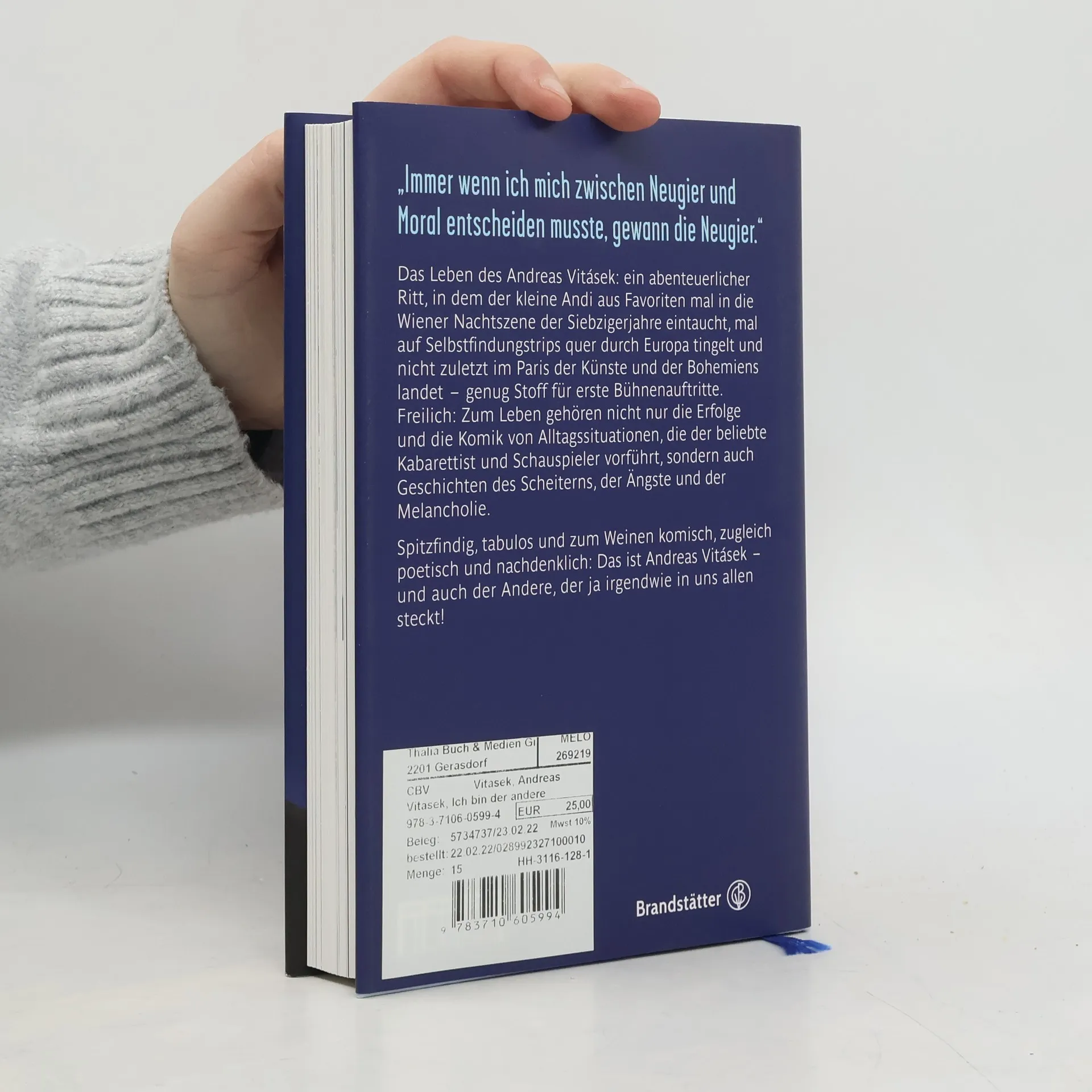 Andreas Vitásek: eine Kabarett-Legende. Sein Leben: ein abenteuerlicher Ritt, in dem der kleine Andi aus Favoriten mal in die Wiener Nachtszene der Siebzigerjahre eintaucht, mal auf Selbstfindungstrips quer durch Europa tingelt und nicht zuletzt im Paris der Künstler*innen und Bohemiens landet – genug Stoff für erste Bühnenauftritte. Doch es wäre nicht Vitásek, wenn er in seinem Buch neben den Erfolgen als Kabarettist, Schauspieler und Regisseur nicht auch die Abgründe offenlegte: persönliche Krisen und panische Angst vor Bühnenauftritten, gebrochene Herzen, Wochenend-Vatertum und der Versuch, vom alten weißen zum alten weisen Mann zu werden. Spitzfindig, tabulos und zum Weinen komisch, zugleich poetisch und nachdenklich erzählt Vitásek von sich – und von dem Anderen, der irgendwie auch in uns steckt.