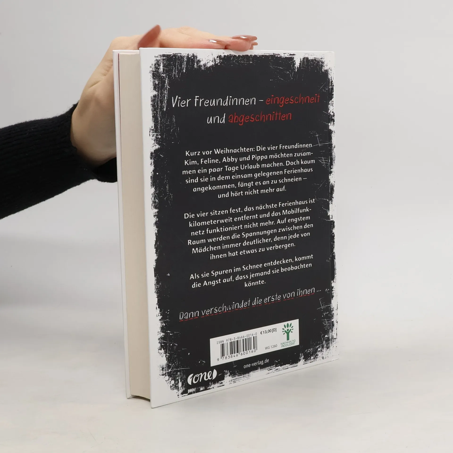 Kurz vor Weihnachten: Die vier Freundinnen Kim, Feline, Abby und Pippa möchten zusammen ein paar Tage Urlaub machen. Doch kaum sind sie in dem einsam gelegenen Ferienhaus angekommen, fängt es an zu schneien - und hört nicht mehr auf. Die vier sitzen fest, das nächste Ferienhaus ist kilometerweit entfernt und das Mobilfunknetz funktioniert nicht mehr. Auf engstem Raum werden die Spannungen zwischen den Mädchen immer deutlicher, denn jede von ihnen hat etwas zu verbergen. Als sie Spuren im Schnee entdecken, kommt die Angst auf, dass jemand sie beobachten könnte. Dann verschwindet die erste von ihnen ...