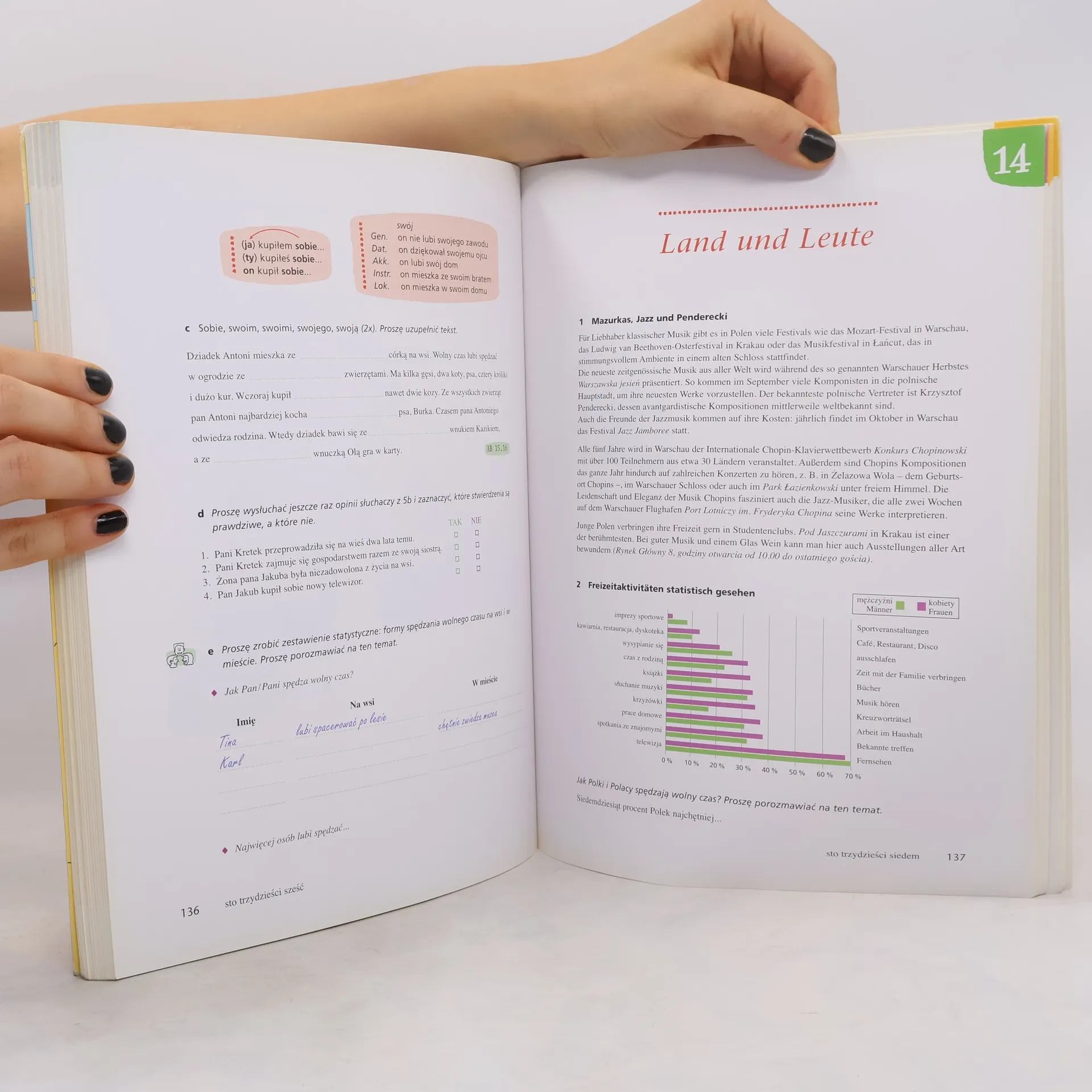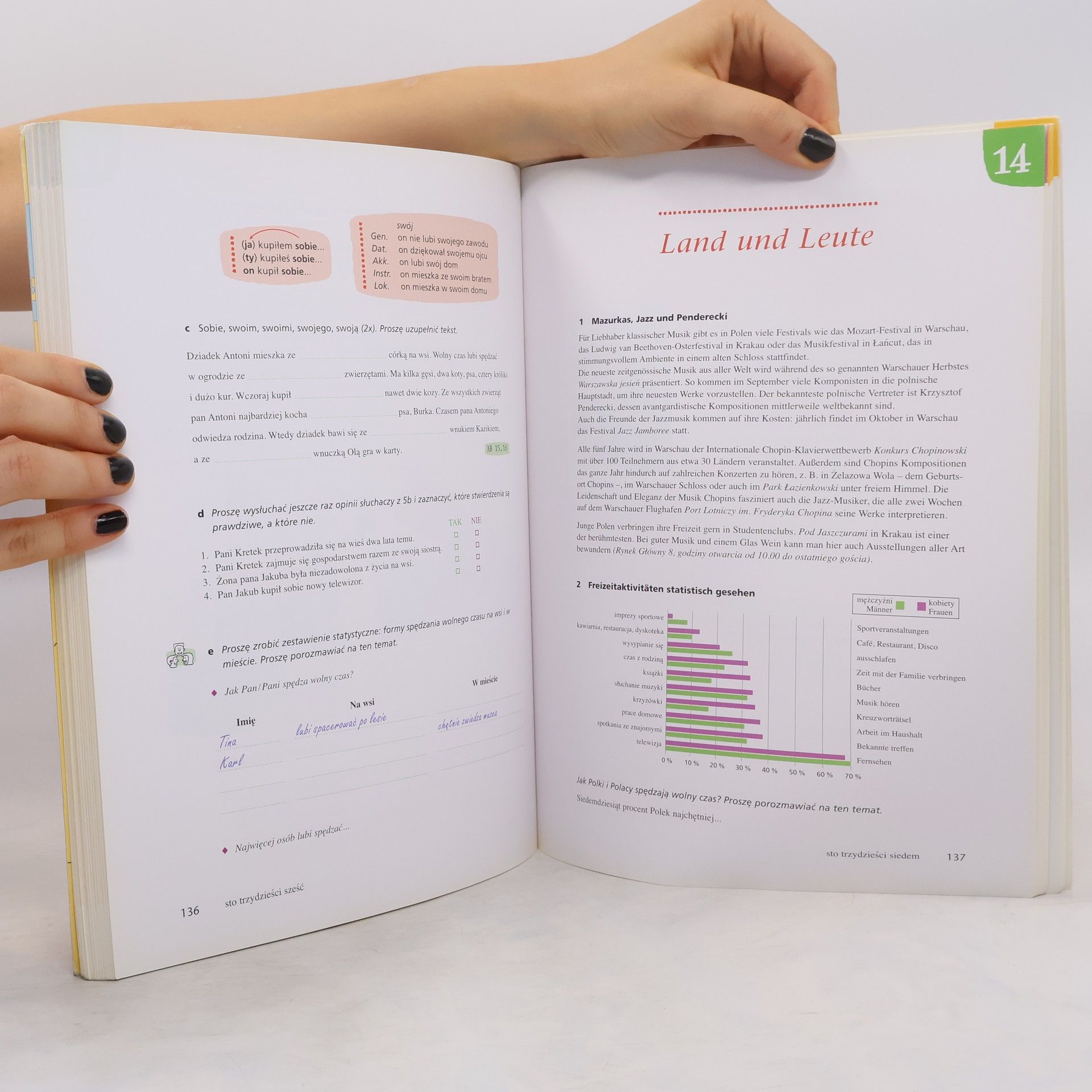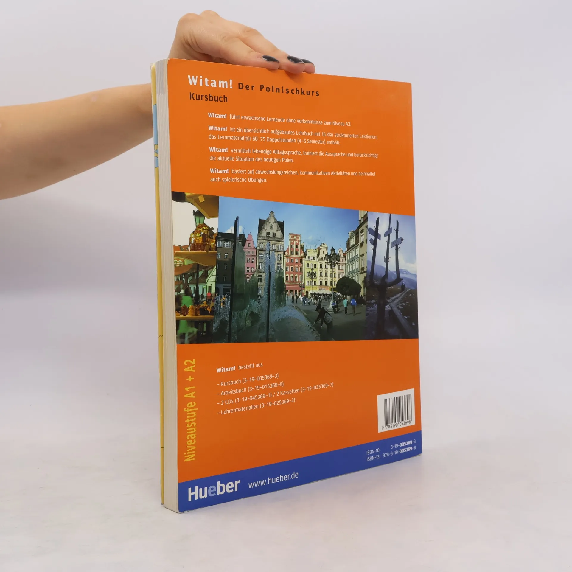 Niveau A1 bis A2 Das Kursbuch von Witam! umfasst 15 klar strukturierte Lektionen, die thematisch aufgebaut sind. Nach jeweils 3 Lektionen gibt es ein Wiederholungsspiel. Eine Zusatzlektion (dodatek) am Ende beinhaltet Material zum Thema „Feste und Feiern in Polen“. Struktur der Lektionen: - alltagsbezogene Dialoge und Texte - bildgesteuerte Übungen - zahlreiche Hörtexte und Hörverständnisübungen - abwechslungsreiche Aktivitäten Land und Leute: ein Einblick in das heutige Polen Schrift und Aussprache (Lektion 1-9): Übungen zur Phonetik; Polen erlesen (Lektion 10-15): die Lesekompetenz wird anhand verschiedener Textsorten entwickelt; Grammatik: kurze und übersichtliche Darstellung über die Grammatik der Lektion. Der Anhang beinhaltet eine systematische Kurzgrammatik und den Lektionswortschatz. Witam! ist in Brandenburg für die Sekundarstufe I (Polnisch als 2. und 3. Fremdsprache) zugelassen.