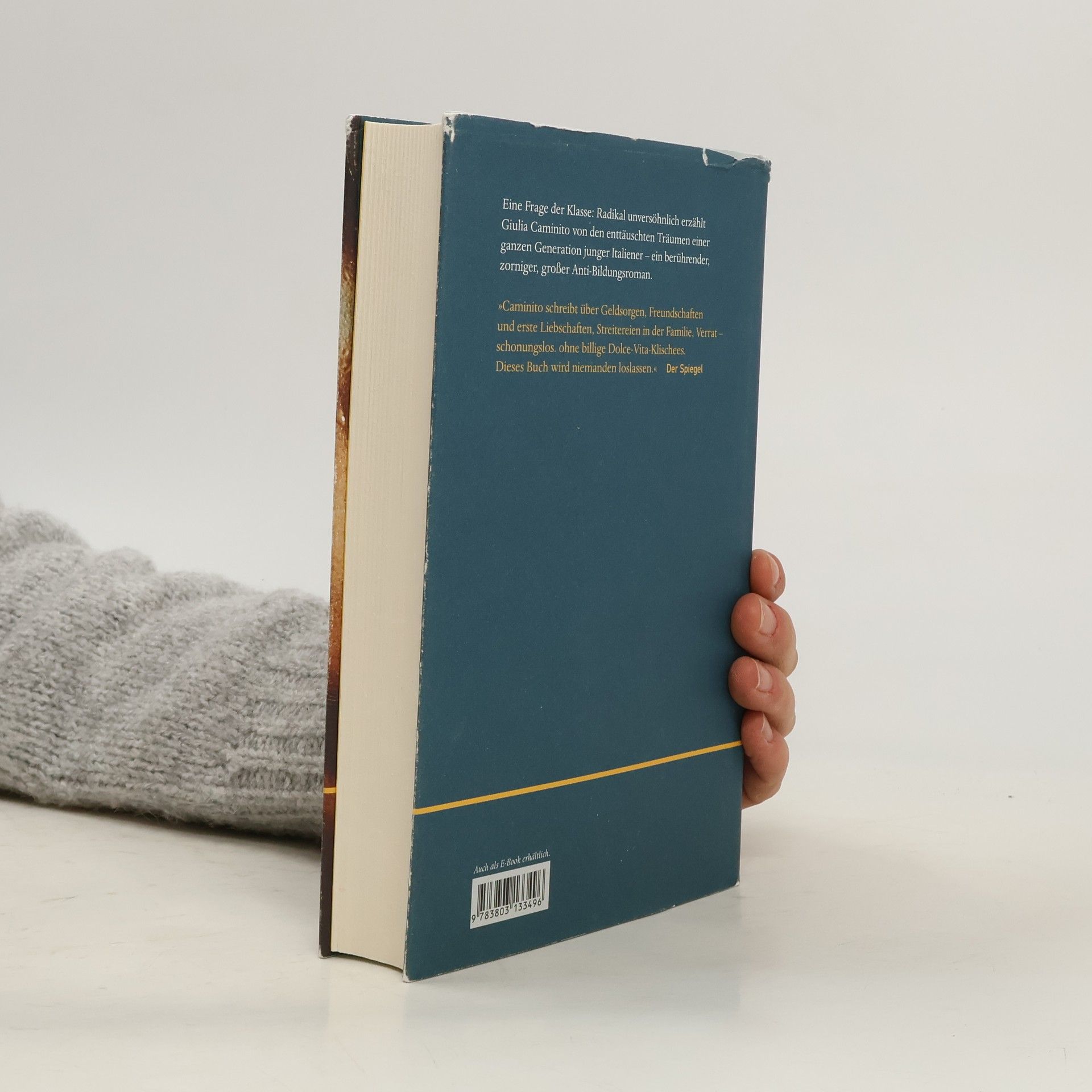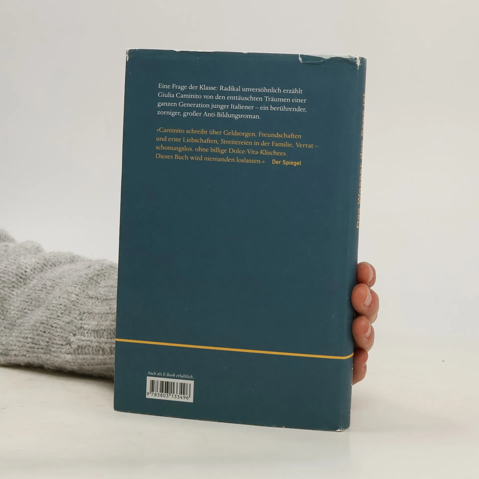 Am Grund des Sees liegt eine versunkene Weihnachtskrippe, sein Wasser schimmert trüb, schmeckt nach Sonnencreme und Benzin. Hier, am Lago di Bracciano, bezieht Gaia mit ihrer Familie eine Sozialwohnung: der Vater, der seit einem Arbeitsunfall im Rollstuhl sitzt, der ältere anarchistische Bruder Mariano, die kleinen Zwillinge – und die Mutter Antonia, die so zupackend wie rücksichtslos alles zusammenhält. Ihre Tochter, blass, sommersprossig, dürr, soll nicht so enden wie sie, Bildung soll der Ausweg für Gaia sein. Doch die erkennt früh, dass Talent und zwanghafter Fleiß nicht ausreichen, um mitzuhalten – wenn man kein liebes Mädchen sein will, den filzstiftgrünen Pullover des Bruders aufträgt und sich kein Handy leisten kann. Konfrontiert mit Herabsetzungen, Leistungsdruck und Orientierungslosigkeit verwandelt sich Gaias stumme Verletzlichkeit in maßlose Wut, die sie zunehmend Grenzen überschreiten lässt. Giulia Caminito hat ein sanftes, raues, wundersam reiches Buch geschrieben: über eine Jugend in der Provinz, lächerliche Lieben, grundstürzende Dramen und eine junge Frau, die ihrer Herkunft nicht entkommt. Ein Roman mit einer unverwechselbaren Erzählstimme und Bildern, die haften bleiben wie ungeliebte Spitznamen.