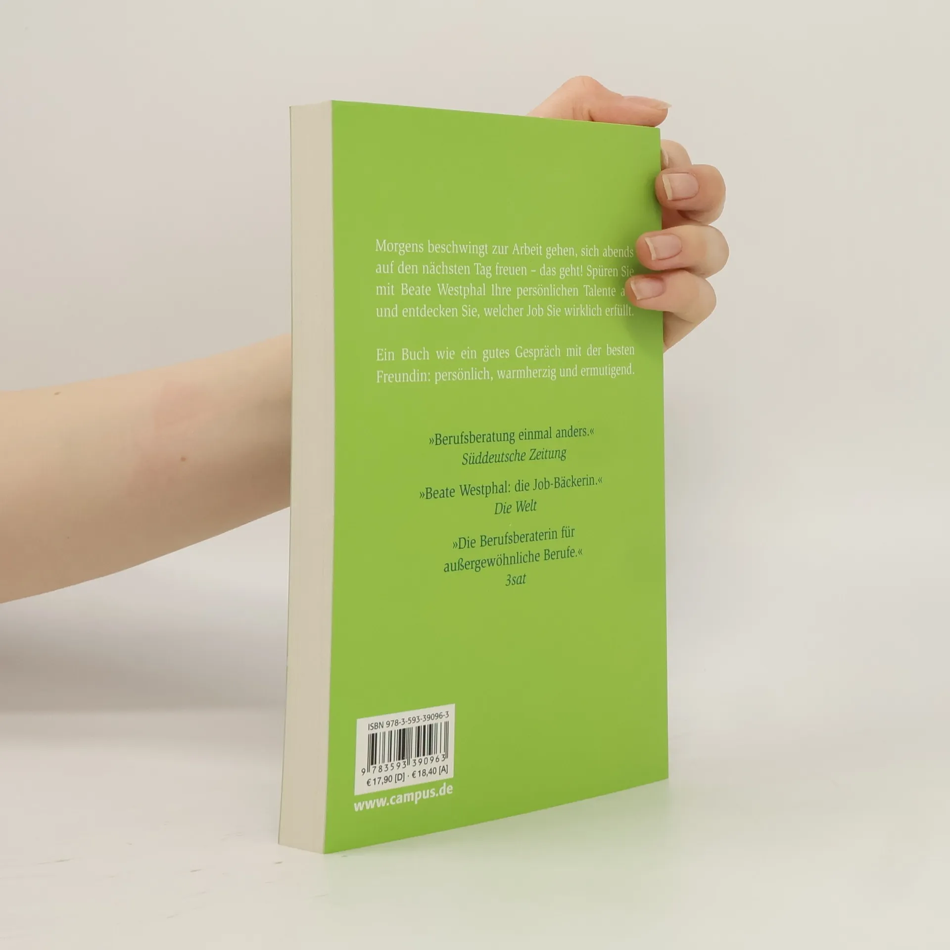 Morgens beschwingt zur Arbeit gehen, sich abends auf den nächsten Tag freuen - das geht! Spüren Sie mit Beate Westphal Ihre persönlichen Talente auf und entdecken Sie, welcher Job Sie wirklich erfüllt. Ein Buch wie ein gutes Gespräch mit der besten Freundin: persönlich, warmherzig und ermutigend. „Berufsberatung einmal anders.“ Süddeutsche Zeitung „Die Job-Fee.“ Cosmopolitan „Die Berufsberaterin für außergewöhnliche Berufe.“ 3sat