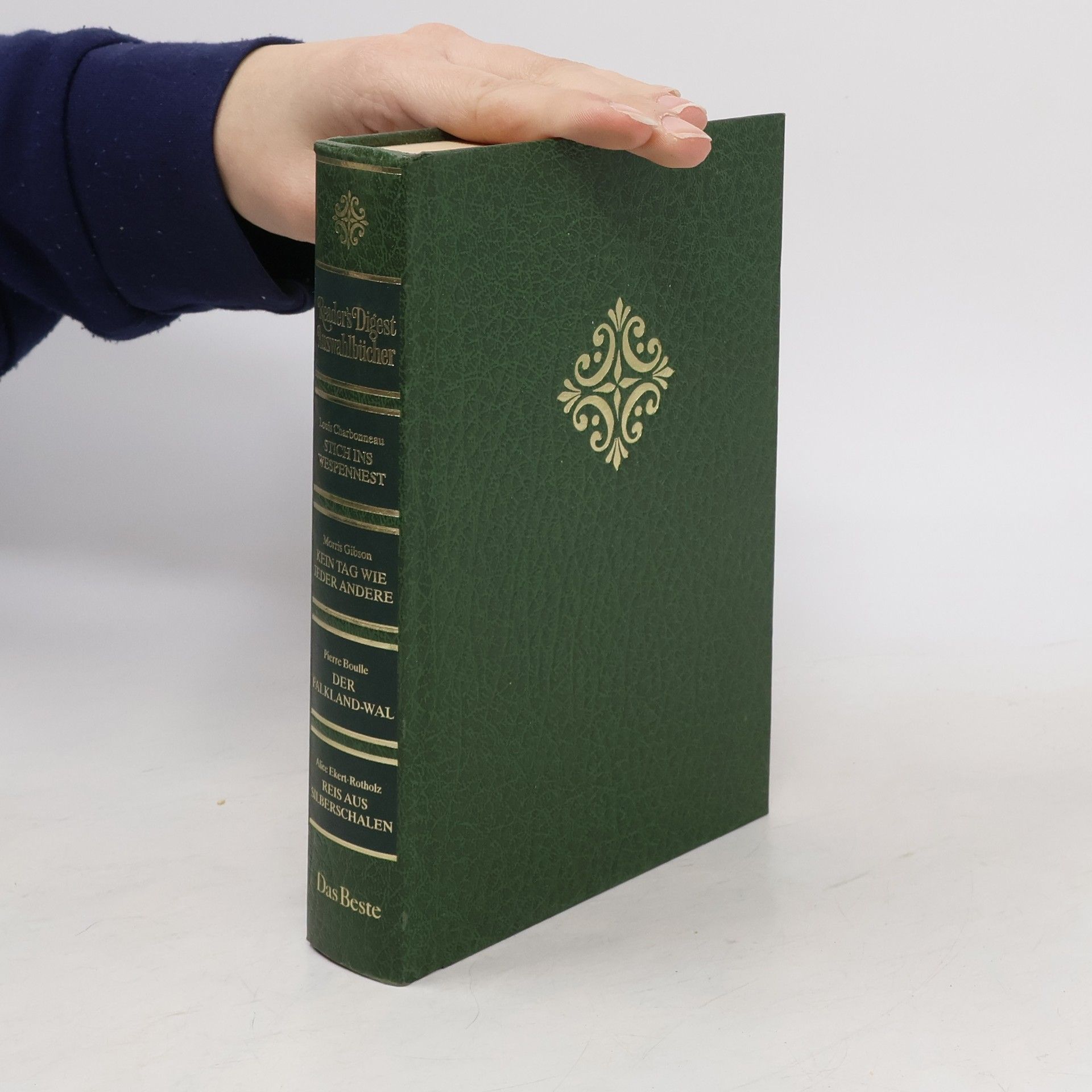 There are currently of book Reader's Digest Auswahlbücher. Stich ins wespennest. Kein Tag wie Jeder Andere. Der Falkland-Wal. Reis aus Silberschalen (1985) in stock.
