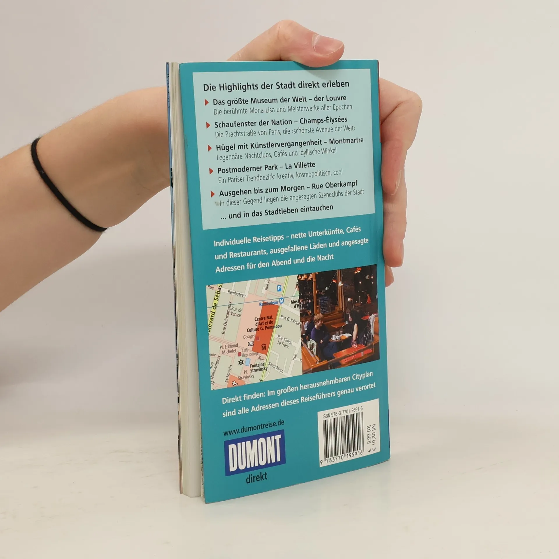 Die Machtzentrale der Grande Nation besitzt weltberühmte Bauwerke wie Notre-Dame, Eiffelturm und Louvre - und einen spezifischen urbanen Charme, wie man ihn eben nur in Paris findet. Es ist die Stadt der Aufklärung, der Revolution und der Liebe, des Savoir-vivre, der Mode und kulinarischer Hochgenüsse, der Eleganz und der Bohème. In 15 » Direkt-Kapiteln« führt Gabriele Kalmbach den Besucher direkt zu den Highlights der Stadt und hilft, ihr Wesen zu entdecken, ihren Puls zu spüren: Notre-Dame; eine Tour mit dem Batobus; Centre Pompidou; der Louvre; das Musée d´Orsay; Galerie Vivienne; der Eiffelturm; rings um die Champs- Élysées; Montmartre; Puces de Clignancourt; Place des Vosges; Park La Villette; Cimetière du Père Lachaise; im Osten von Paris; Rue Oberkampf. Rund 200 handverlesene Adressen für jede Laune, jeden Geschmack, jeden Geldbeutel, von der Übernachtung über Essen und Trinken sowie Einkaufen bis Ausgehen lassen den Citytrip zum Erlebnis werden. Jede Adresse ist mit einem Schlagwort versehen – das erleichtert die schnelle Orientierung. Im großen separaten Cityplan sind alle im Buch empfohlenen Adressen namentlich eingetragen, außerdem zeigt er einen vergrößerten Zentrumsausschnitt, einen Metroplan - Métro-RER-Tramway, Extrakarten zu La Villette und Montmartre, sowie eine Großraumkarte. Die Übersichtskarte zeigt alle Highlights, Detailpläne erlauben die präzise Orientierung in den 15 »Direkt-Kapiteln«.