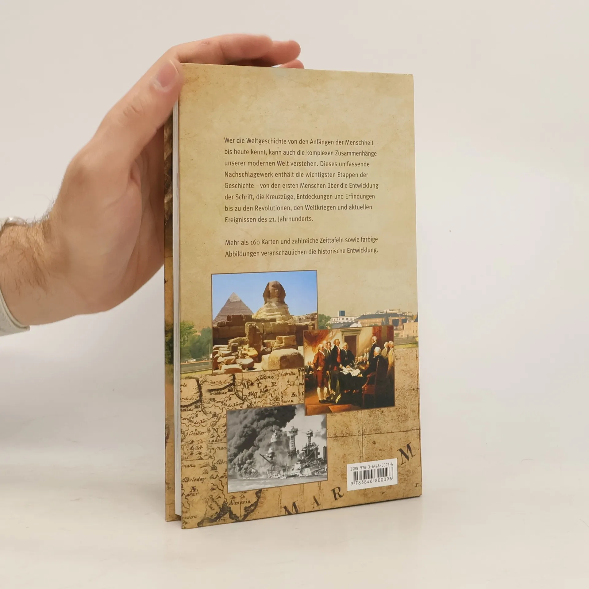 Dieses umfassende Nachschlagewerk enthält die wichtigsten Etappen der Geschichte – von den ersten Menschen über die Entwicklung der Schrift, die Kreuzzüge, Entdeckungen und Erfindungen bis zu den Revolutionen, den Weltkriegen und aktuellen Ereignissen des 21. Jahrhunderts. Mehr als 160 Karten und zahlreiche Zeittafeln sowie farbige Abbildungen veranschaulichen die historische Entwicklung.
