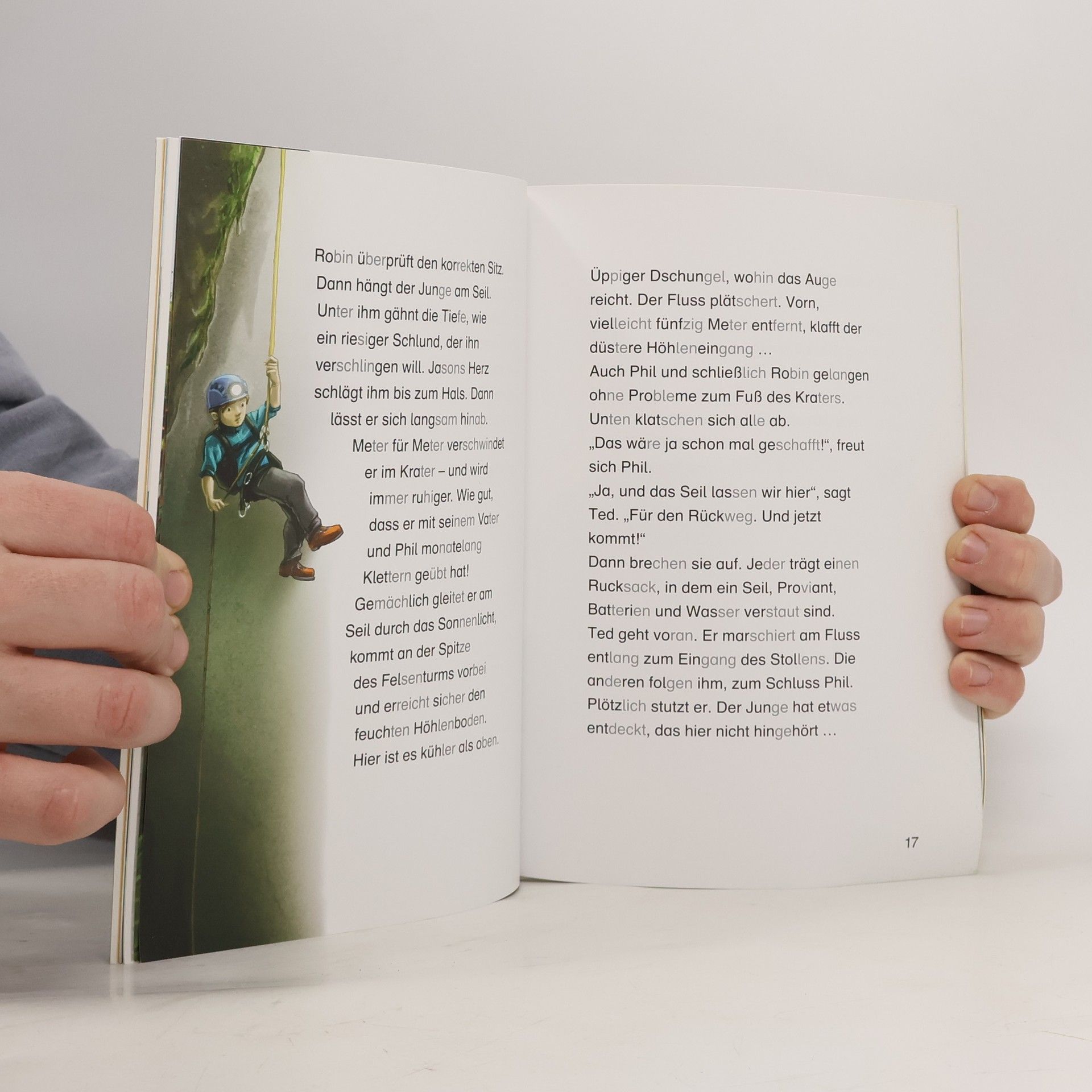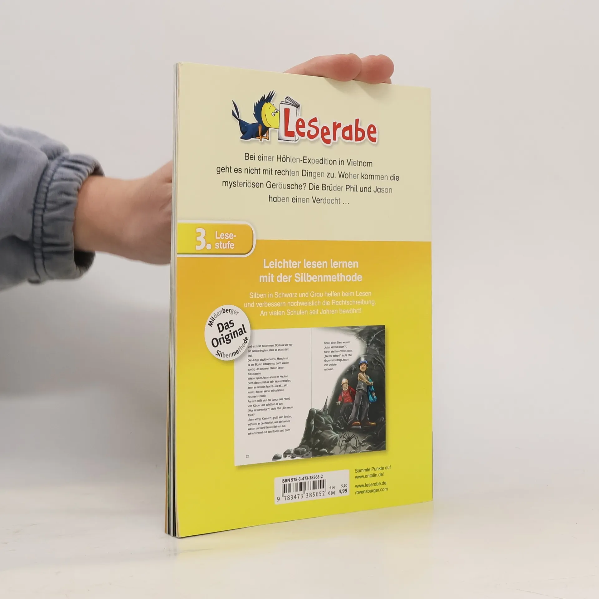 Phil und Jason dürfen zum ersten Mal ihren Vater, einen berühmten Höhlenforscher, auf einer Expedition begleiten. Die Reise führt sie nach Vietnam, wo sie eine noch unerforschte Höhle erkunden wollen. Beim Abstieg macht Phil eine merkwürdige Entdeckung: Er findet einen Karabinerhaken im Fels. Sind sie etwa doch nicht die Ersten hier? Lesen lernen wie im Flug! Die Kinderbücher der Reihe Leserabe – 3. Lesestufe wurden mit Pädagogen entwickelt und richten sich an Leseprofis ab der 3. Klasse. Die original Mildenberger Silbenmethode fördert die Lesekompetenz: Silben in Grau und Schwarz helfen beim Lesenlernen und verbessern nachweislich die Rechtschreibung. Gelistet bei Antolin.