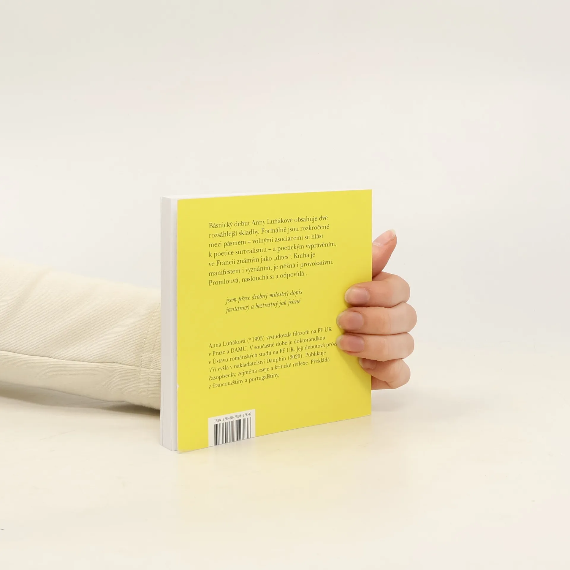 Básnický debut Anny Luňákové Jen ztratím jméno obsahuje dvě rozsáhlejší skladby. Formálně jsou rozkročené mezi pásmem – volnými asociacemi se hlásí k poetice surrealismu – a poetickým vyprávěním, ve Francii známým jako „dites“. Kniha je manifestem i vyznáním, je něžná i provokativní. Promlouvá, naslouchá si a odpovídá...