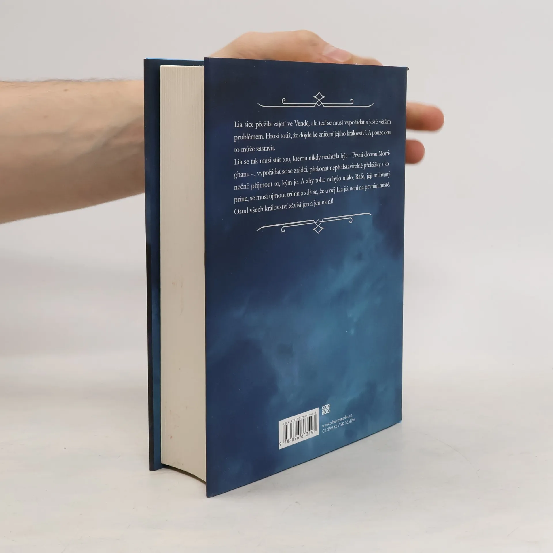 Závěrečný díl úspěšné trilogie Falešný polibek. Lia sice přežila zajetí ve Vendě, ale teď se musí vypořádat s ještě větším problémem. Hrozí totiž, že dojde ke zničení jejího království. A pouze ona to může zastavit. Lia se tak musí stát tou, kterou nikdy nechtěla být – První dcerou Morrighanu. Musí se vypořádat se zrádci, překonat nepředstavitelné překážky a konečně přijmout to, kým je. Protože osud všech království závisí jen a jen na ní.