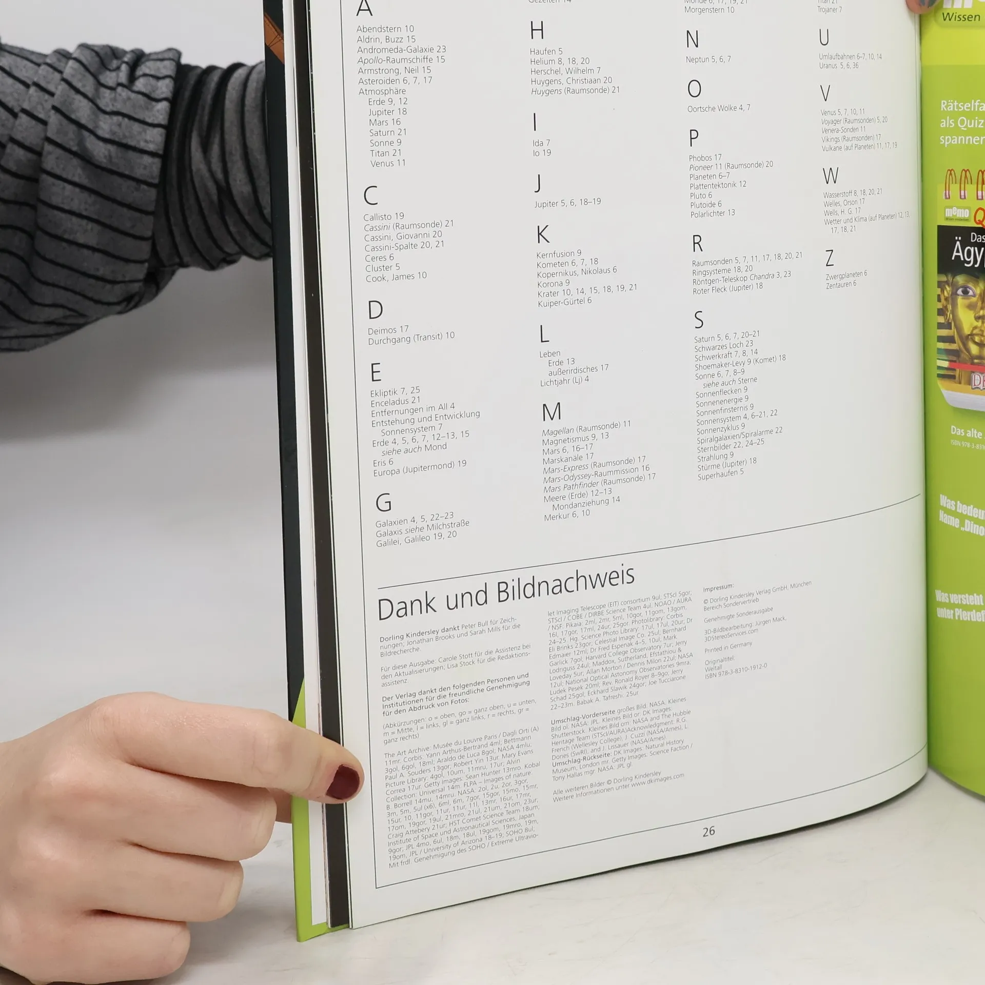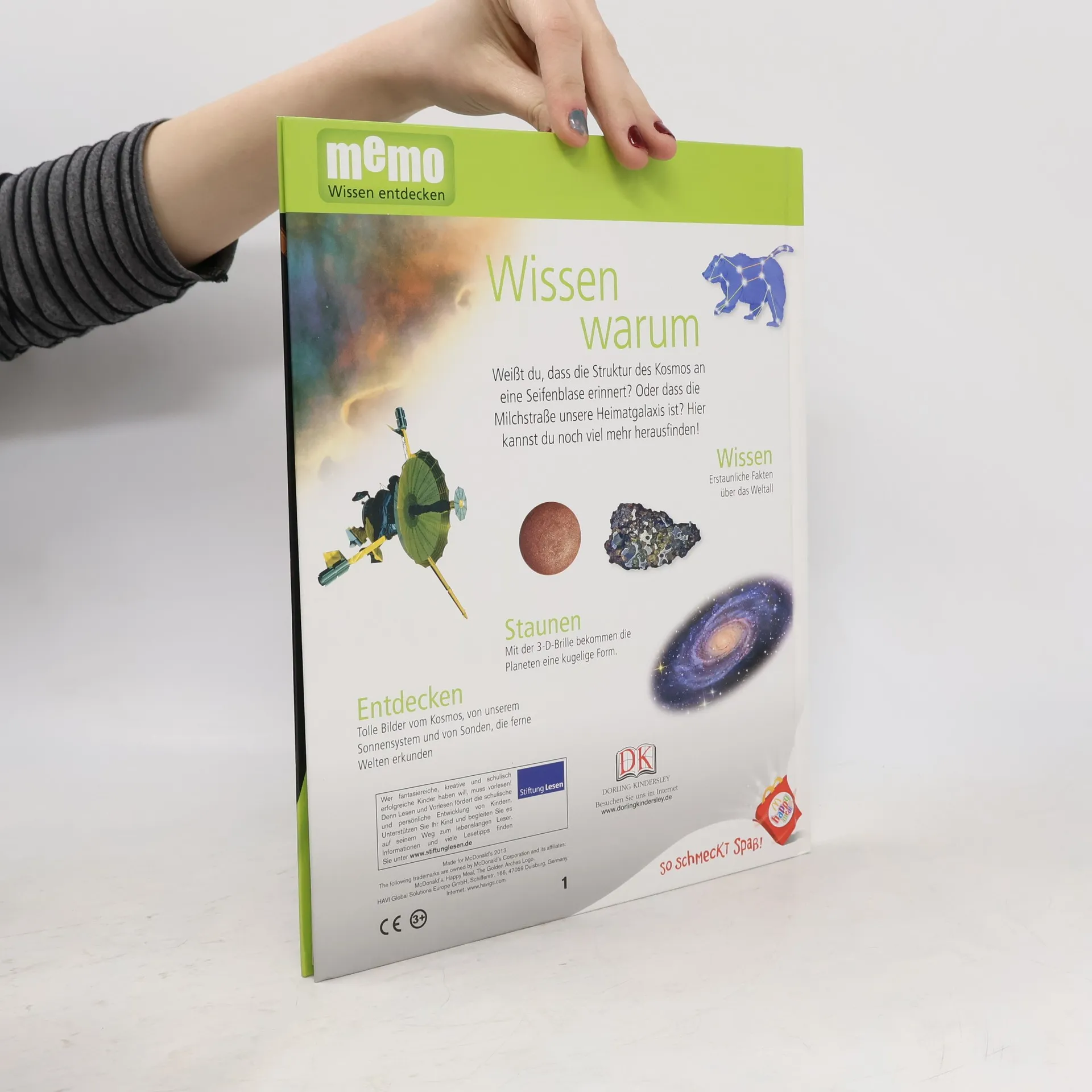 Das Universum ist alles was existiert - die Unermesslichkeit des Weltalls mit seinen Galaxien, Sternen und Planeten und allem, was dazwischen liegt. Es ist so groß, dass seine Entfernungen in Lichtjahren zu messen sind. Was ist ein Lichtjahr? Wie entstehen Sterne? Was ist ein Meteorit? Wie viele Planeten gibt es? Auf diese und viele weitere Fragen bekommen Kinder in Band 15 der neuen großen Wissensreihe memo Antworten. Spektakuläre Bilder von Planeten, Sternen und fernen Galaxien sind mit gut gegliederten, kurzen Texten kombiniert und erklären die Thematik für Kinder leicht verständlich. Auch schwierigere Sachverhalte werden so begreifbar. Rubriken wie „Erstaunliche Fakten“, „Fragen und Antworten“ oder „Rekordverdächtig“ vertiefen das vermittelte Wissen, ein Glossar am Ende des Buches gibt noch einmal einen Überblick über das ganze Thema. Ideal auch für Referate und Schulprojekte.
