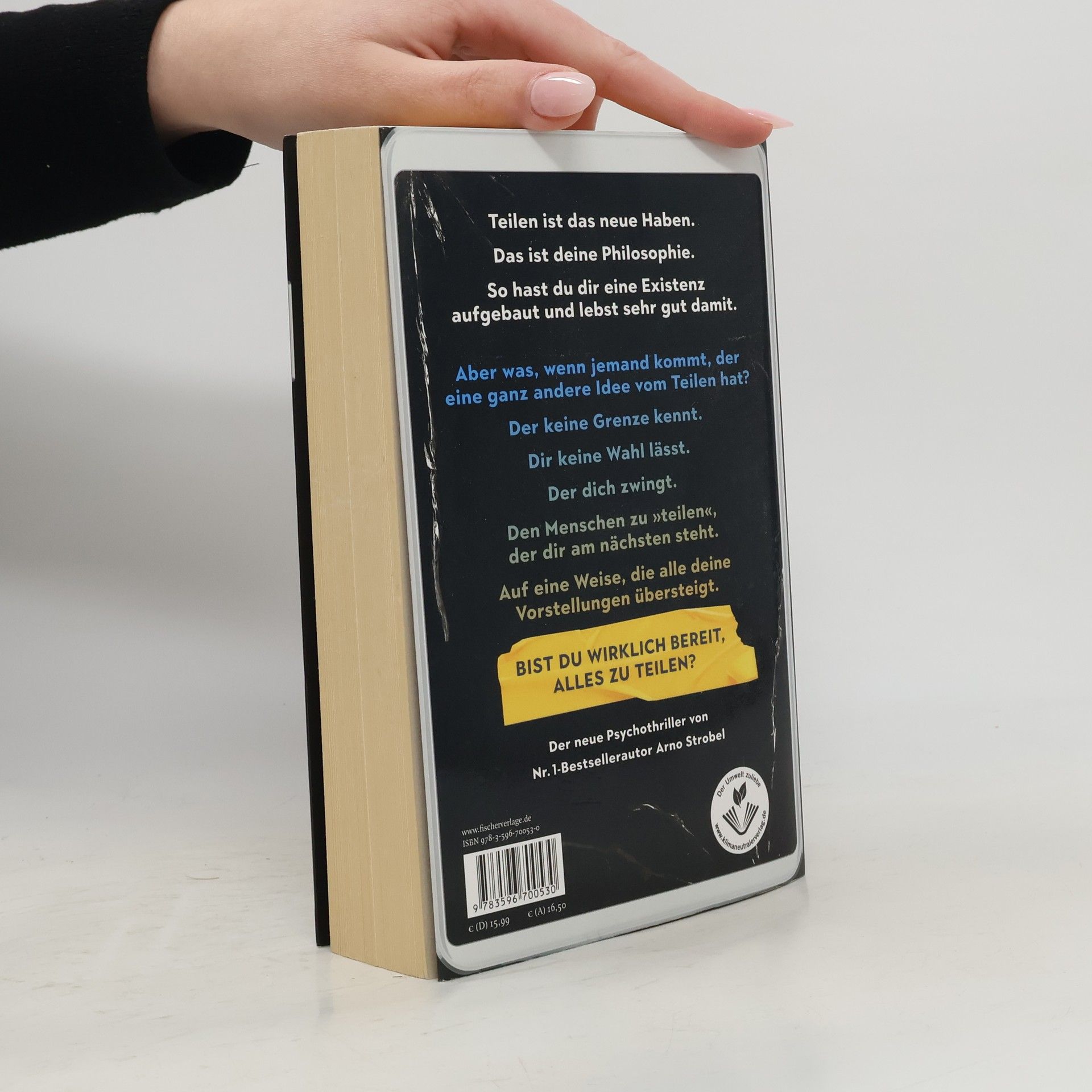 Du glaubst an die Idee der gemeinsamen Nutzung. Aber was, wenn du gezwungen wirst, den Menschen zu »teilen«, der dir am nächsten steht? Der neue Psycho-Thriller von Nr.1-Bestseller-Autor Arno Strobel, Gewinner des Krimi-Publikumspreises MIMI 2023 Markus und seine Frau Bettina fanden den Gedanken, dass man nicht alles besitzen muss, um es zu nutzen, schon immer gut. Diese Philosophie liegt auch ihrem Sharing-Unternehmen zugrunde. Möglichst viele sollen Autos und Wohnungen teilen und so für mehr Nachhaltigkeit sorgen. Bis Bettina in die Hand eines Unbekannten gerät, im Darknet öffentlich misshandelt wird und das Teilen plötzlich eine andere Dimension annimmt. Wenn Markus seine Frau lebend wiedersehen will, muss er tun, was Bettinas Peiniger sagt. Ausnahmslos, bedingungslos. Und ein Spiel mitspielen, das er nicht gewinnen kann. Auch wenn er bereit ist, alles auf eine Karte zu setzen. »Bei Arno Strobels Thrillern brauchen Sie kein Lesezeichen, man kann sie sowieso nicht aus der Hand legen. Packend und nervenzerreißend!« Sebastian Fitzek