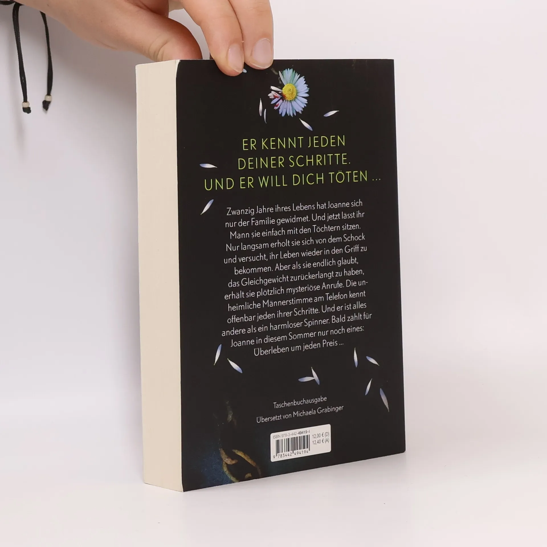 Er ruft dich an. Er kennt jeden deiner Schritte. Und er will dich töten ... Zwanzig Jahre ihres Lebens hat Joanne sich nur der Familie gewidmet. Und jetzt lässt ihr Mann sie einfach mit den Töchtern sitzen. Nur langsam erholt sie sich von ihrem Schock und versucht, ihr Leben wieder in den Griff zu bekommen. Aber als sie endlich glaubt, ihr Gleichgewicht zurückerlangt zu haben, erhält sie plötzlich mysteriöse Anrufe. Die unheimliche Männerstimme am Telefon kennt offenbar jeden ihrer Schritte. Und er ist alles andere als ein harmloser Spinner. Bald zählt für Joanne in diesem Sommer nur noch eines: Überleben um jeden Preis ...