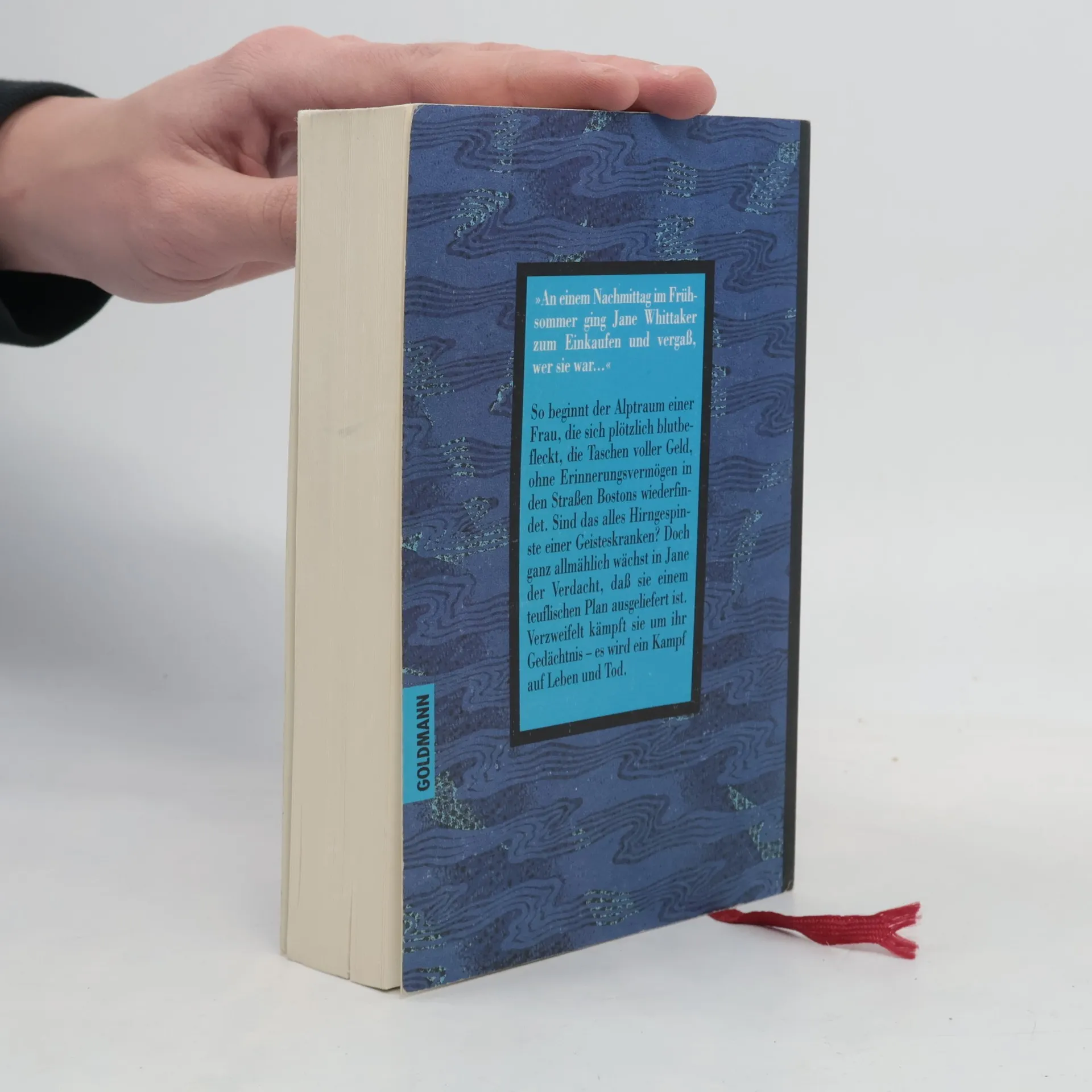"An einem Nachmittag im Frühsommer ging Jane Whittaker zum Einkaufen und vergaß, wer sie war..." So beginnt der Albtraum einer Frau, als sie sich plötzlich blutbefleckt, die Taschen voller Geld und ohne Erinnerungsvermögen auf den Straßen Bostons wiederfindet. Sind das alles Hirngespinste einer Geisteskranken? Doch ganz allmählich wächst in Jane der Verdacht, daß sie einem teuflischen Plan ausgeliefert ist. Verzweifelt kämpft Jane von nun an um ihr Gedächtnis – es wird ein Kampf auf Leben und Tod.