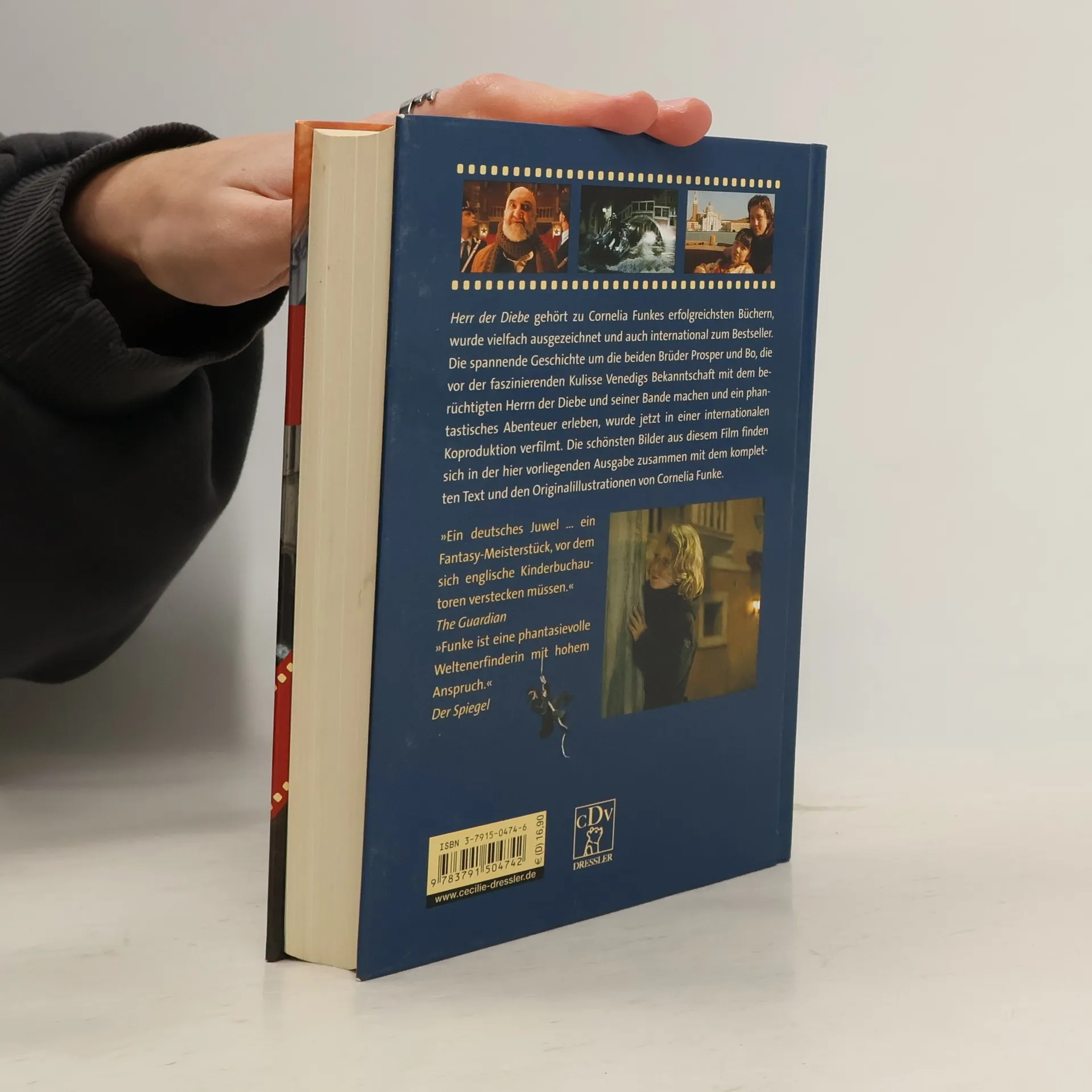 „Herr der Diebe“ mit den schönsten Fotos aus dem Kinofilm Als Prosper und Bo auf der Flucht vor ihrer Tante und dem Detektiv Victor bei einer Kinderbande in Venedig Unterschlupf finden, ahnen sie noch nicht, welches Abenteuer sie erwartet … Der Kinofilm „Herr der Diebe“, eine aufwändige internationale Produktion, entführt in die geheimnisvolle Welt von Cornelia Funkes Venedig - ein Kinoerlebnis voll atemloser Spannung! Die Romanausgabe mit Filmbildern enthält den kompletten Text, alle Originalillustrationen sowie viele farbige Fotos.