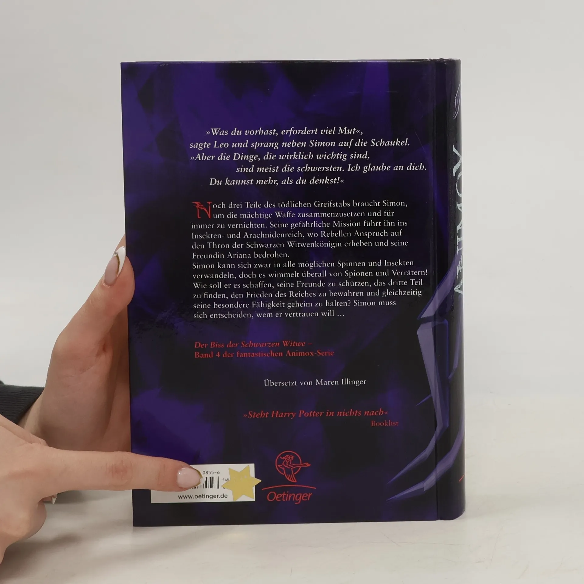 Im vierten Band der fesselnden Tierwandler-Saga von Aimée Carter steht der 12-jährige Simon Thorn erneut im Zentrum eines Konflikts zwischen den Tierreichen. Nach seinen Abenteuern im Schlangen- und Unterwasserreich führt die Suche nach der mächtigen Waffe des legendären Bestienkönigs Simon und seine Freunde ins Insektenreich. Dort müssen sie die gefürchtete Schwarze Witwenkönigin um Hilfe bitten, was einen hohen Preis fordert. Simon begibt sich auf eine riskante Mission, um die entführte Tochter der Königin zu retten, und erkennt, dass sein Bruder Nolan in großer Gefahr schwebt. Dieser Band entführt die Leser in das geheimnisvolle Insektenreich, wo Intrigen und Verrat herrschen. Simon wird mit schwierigen Entscheidungen konfrontiert, die seine Loyalität und die Zukunft der Tierreiche auf die Probe stellen. Die Suche nach den Waffenstücken bringt spannende Enthüllungen, und Simon merkt, dass die Grenze zwischen Freund und Feind schmaler ist als gedacht. Aimée Carter erzählt eine packende Geschichte voller Abenteuer, Freundschaft und Mut, die sowohl junge Leser als auch Erwachsene fesselt und die Vorfreude auf das große Finale der Reihe steigert. Die „Animox“-Reihe hat sich als Bestseller etabliert und begeistert mit ihrer Mischung aus Fantasy und Abenteuer. Ideal für Fans von Tierfantasy und epischen Heldengeschichten.