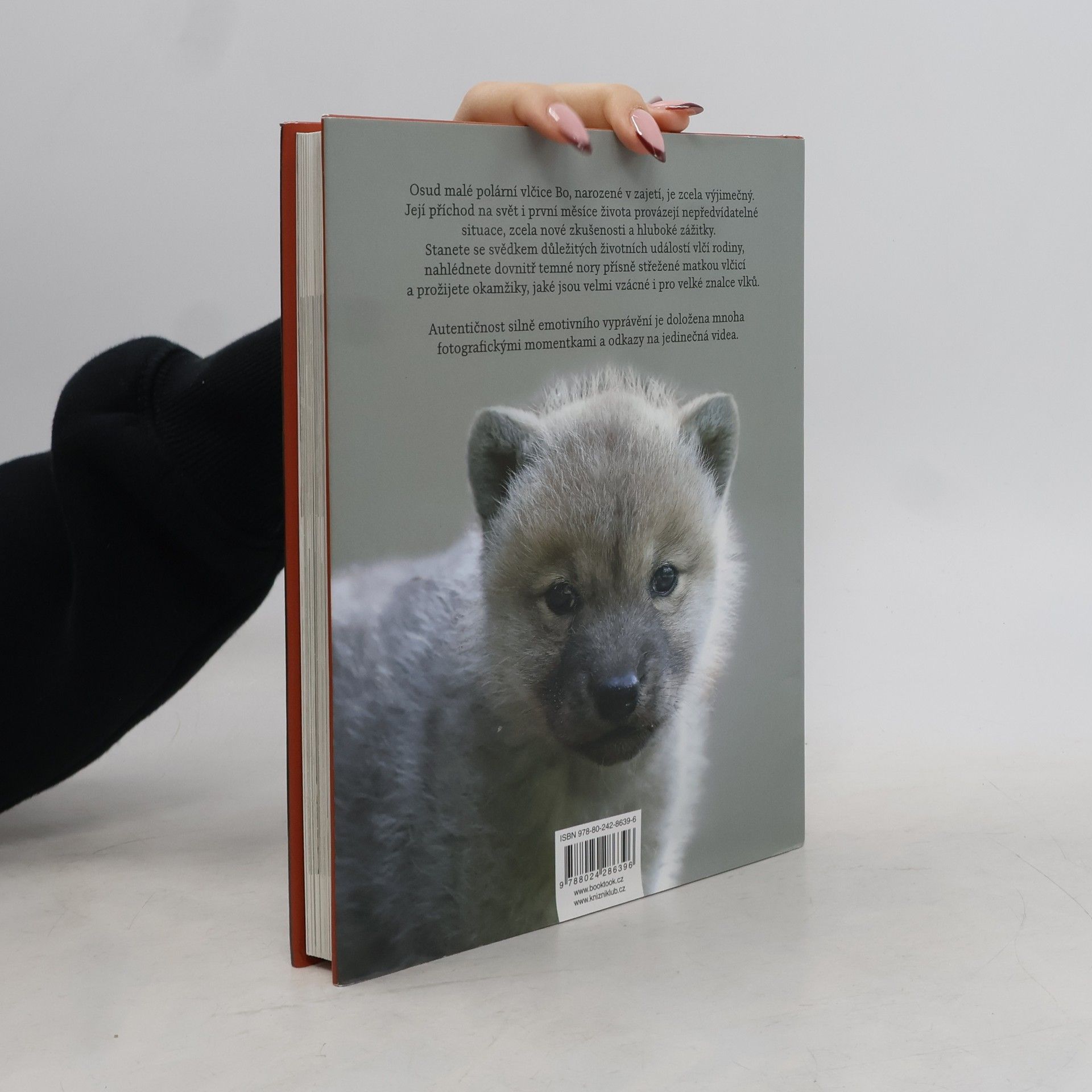 Osud malé polární vlčice Bo, narozené v zajetí, je zcela výjimečný. Její příchod na svět i první měsíce života provázejí nepředvídatelné situace, zcela nové zkušenosti a hluboké zážitky. Stanete se svědkem důležitých životních situací vlčí rodiny, nahlédnete dovnitř temné nory přísně střežené matkou vlčicí a prožijete okamžiky, jaké jsou velmi vzácné i pro velké znalce vlků. Autentičnost silně emotivního vyprávění je doložena mnoha fotografickými momentkami autorky Tanji Askani, vlčí expertky a uznávané fotografky zvířat.