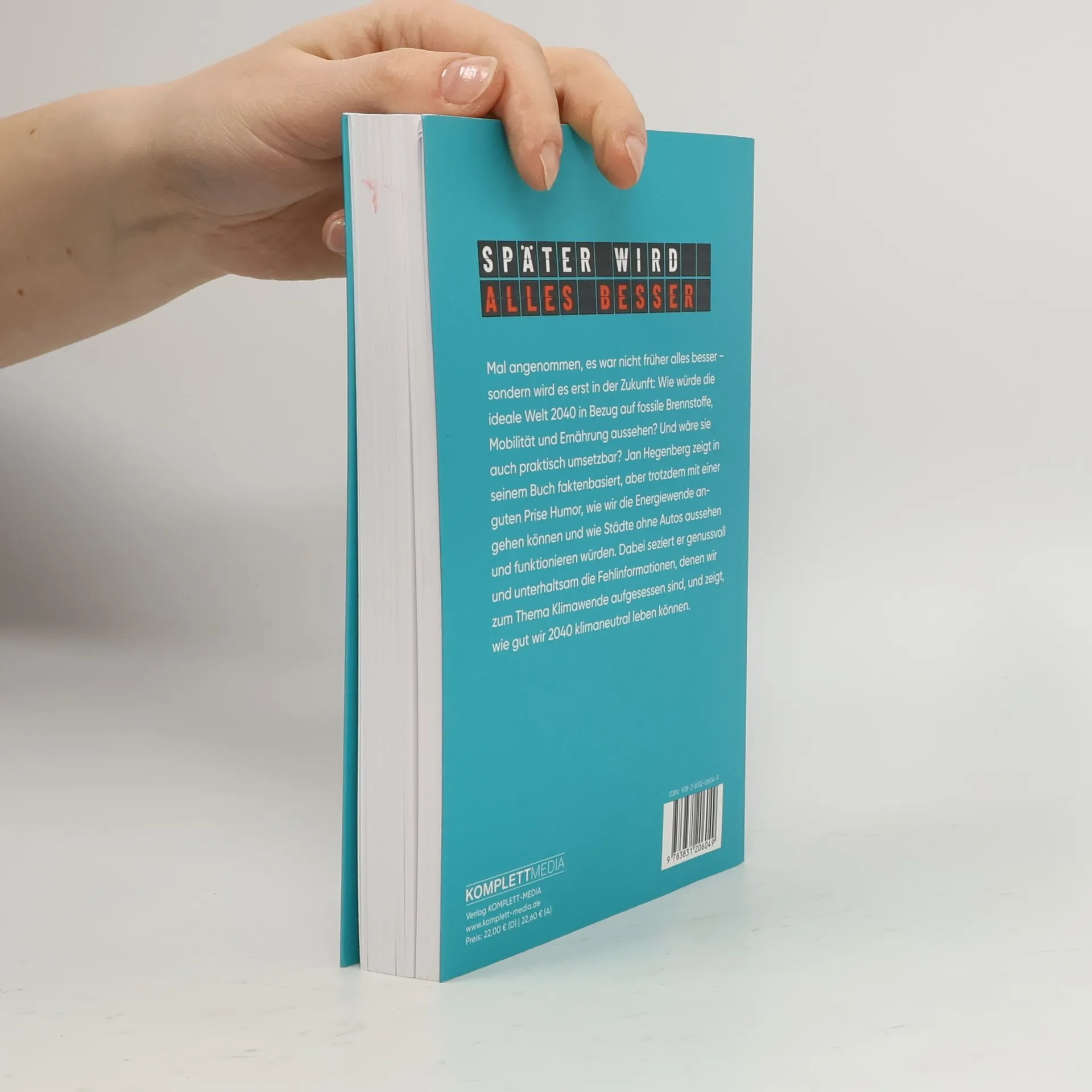Mal angenommen es war nicht früher alles besser – sondern wird es erst in der Zukunft: Wie würde die ideale Welt 2040 in Bezug auf fossile Brennstoffe, Mobilität und Ernährung aussehen? Und wäre sie auch praktisch umsetzbar? Jan Hegenberg zeigt in seinem Buch faktenbasiert, aber trotzdem mit einer ordentlichen Prise Humor, wie wir die Energiewende angehen können und wie Städte ohne Autos aussehen und funktionieren würden. Dabei seziert er genussvoll und unterhaltsam die Fehlinformationen, denen wir zu dem Thema Klimawende aufgesessen sind, und zeigt, wie gut wir 2040 klimaneutral leben können.