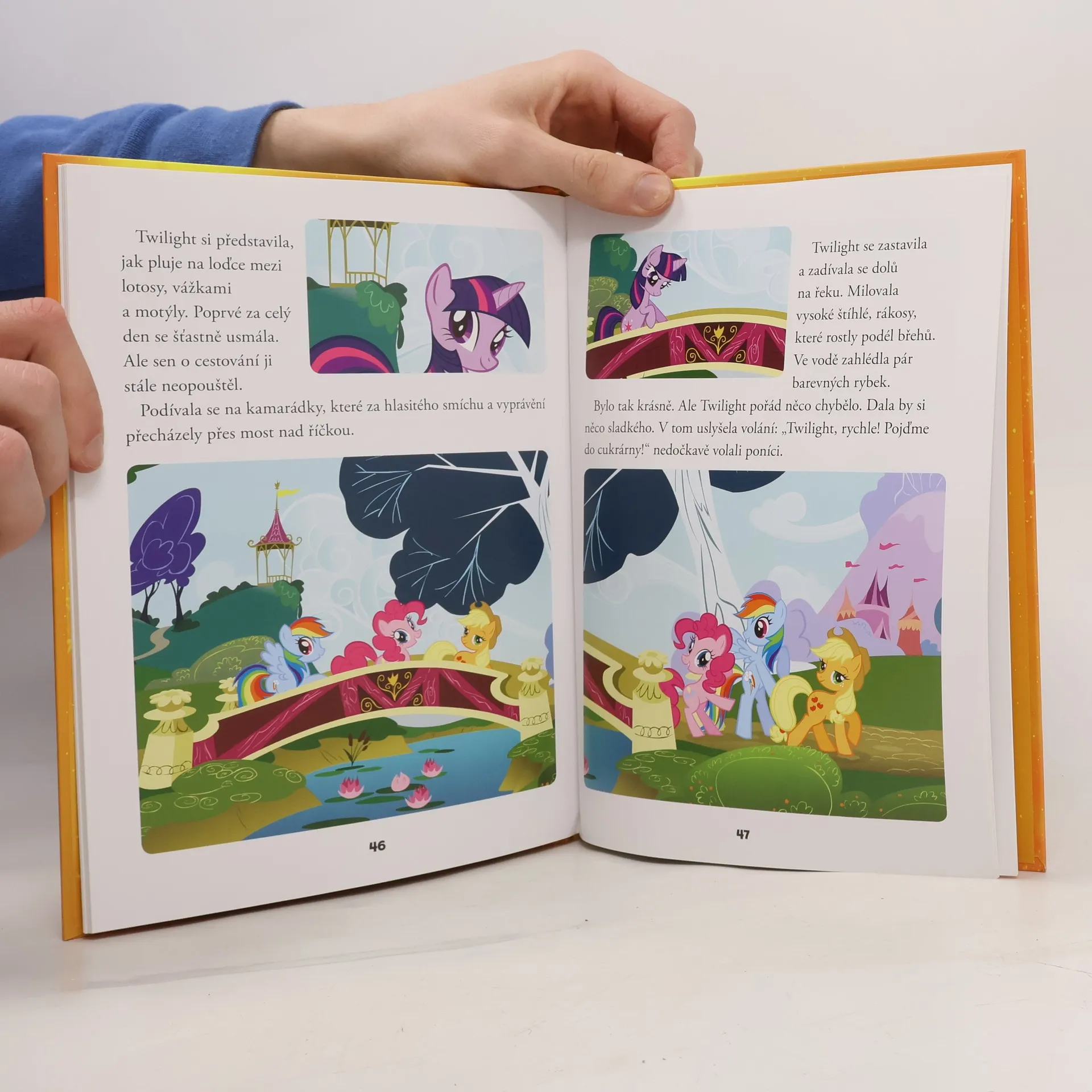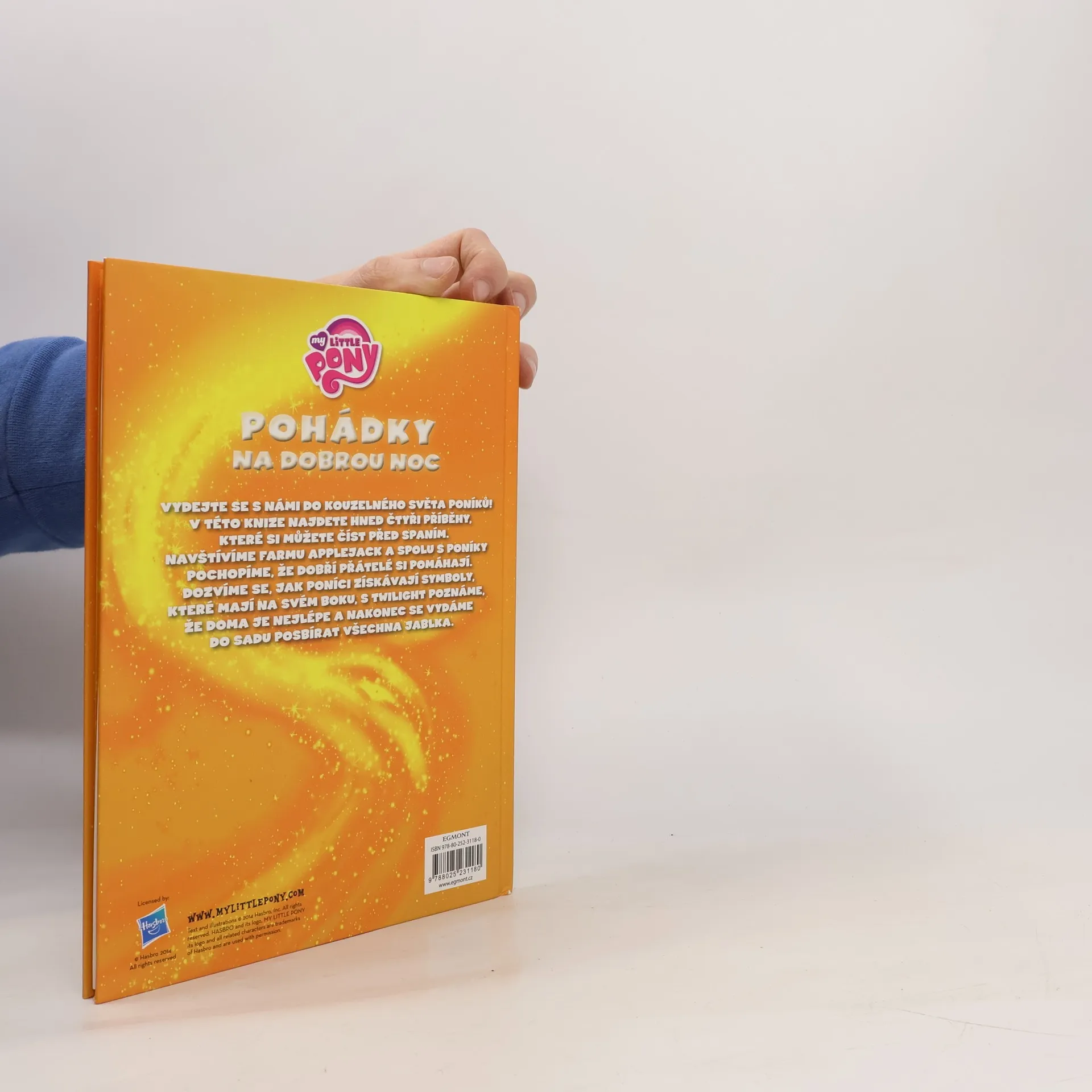 Vydejte se s námi do kouzelného světa poníků! V této knize najdete hned čtyři příběhy, které si můžete číst před spaním. Navštívíme farmu Applejack a spolu s poníky pochopíme, že dobří přátelé si pomáhají. Dozvíme se, jak poníci získávají symboly, které mají na svém boku. S Twilight poznáme, že doma je nejlépe a nakonec se s poníky vydáme do sadu posbírat všechna jablka.