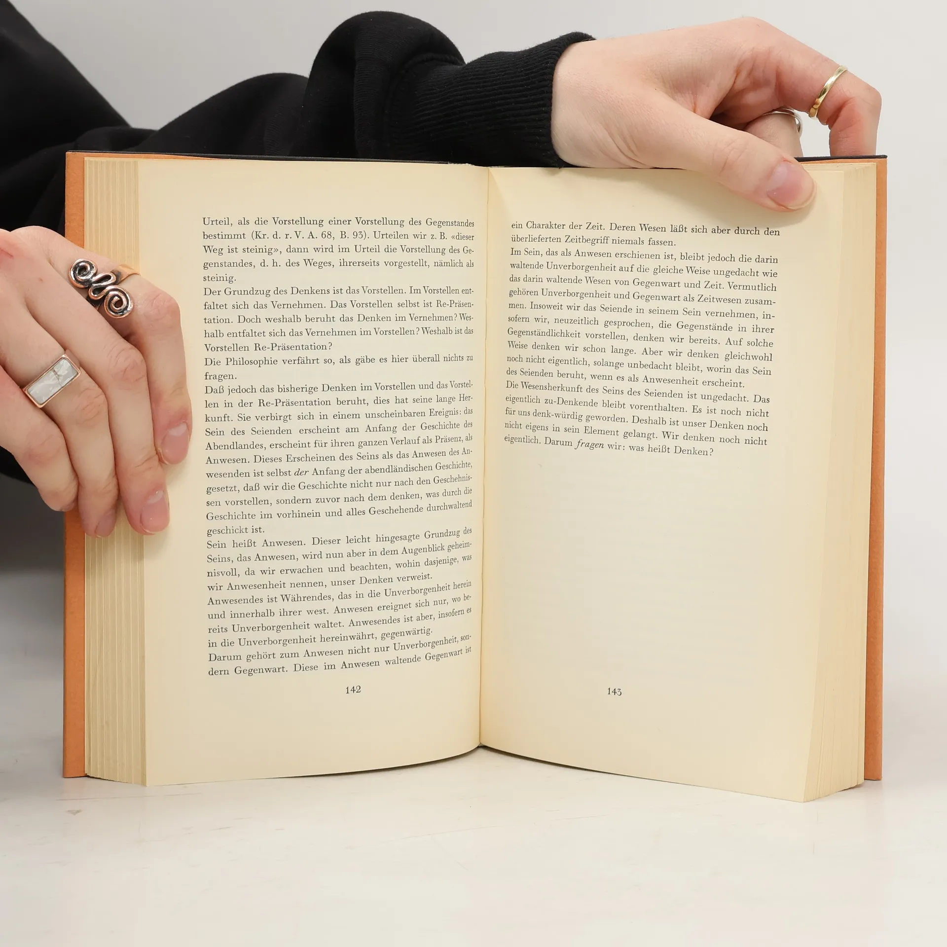Vorwort-"Das Buch ist, solange es ungelesen vorliegt, eine Zusammenstellung von Vorträge und Aufsätzen. Für den Leser könnte es zu einer Sammlung werden, die sich um die Vereinzelung der Stücke nicht mehr zu kümmern braucht. Der Leser sähe sich auf einen Weg gebracht, den ein Autor vorausgegangen ist, der im Glücksfall als auctor ein augere, ein Gedeihenlassen auslöst. Im vorliegenden Falle gilt es, sich wie vordem zu mühen, daß dem von altersher zu-Denkenden, aber noch Ungedachten, durch uablaässige Versuche ein Bereich bereitet werde, aus dessen Spielraum her das Ungedachte ein Denken beansprucht..." ~(Todtnauberg, im August 1954)