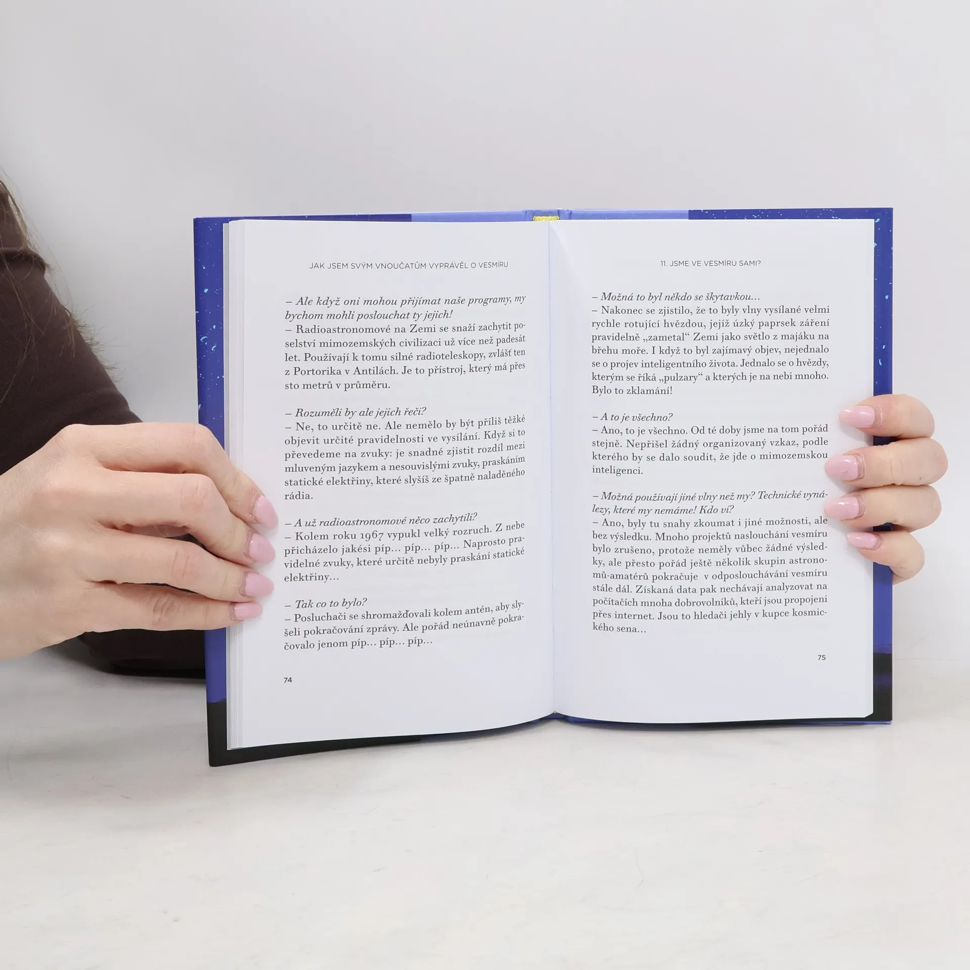 Kniha je založena na autentických rozhovorech astrofyzika Huberta Reevese s jeho čtrnáctiletou vnučkou. Věnuje se širokému spektru témat: kromě známých otázek jako třeba vznik a stáří vesmíru, černé díry a temná hmota se zabývá i způsoby měření a poznávání světa, principy vědeckého uvažování a uspořádáním lidských znalostí. Stranou nezůstávají ani úvahy o mimozemském životě, otázka "hodináře" čili stvořitele vesmíru nebo zamyšlení o odpovědnosti lidstva za stav naší planety. Kniha je vyprávěna lehce, srozumitelně a plyne jako skutečný dialog se zvídavou dívkou, přesto však často zabíhá do nečekaných hloubek: je znát, že Hubert Reeves je zkušený popularizátor vědy a zároveň velký vědec, jehož myšlenky a postoje měly čas dozrát. Sám autor knihu charakterizuje jako svůj duchovní odkaz mladé generaci a je zřejmé, že si na něm dal záležet.