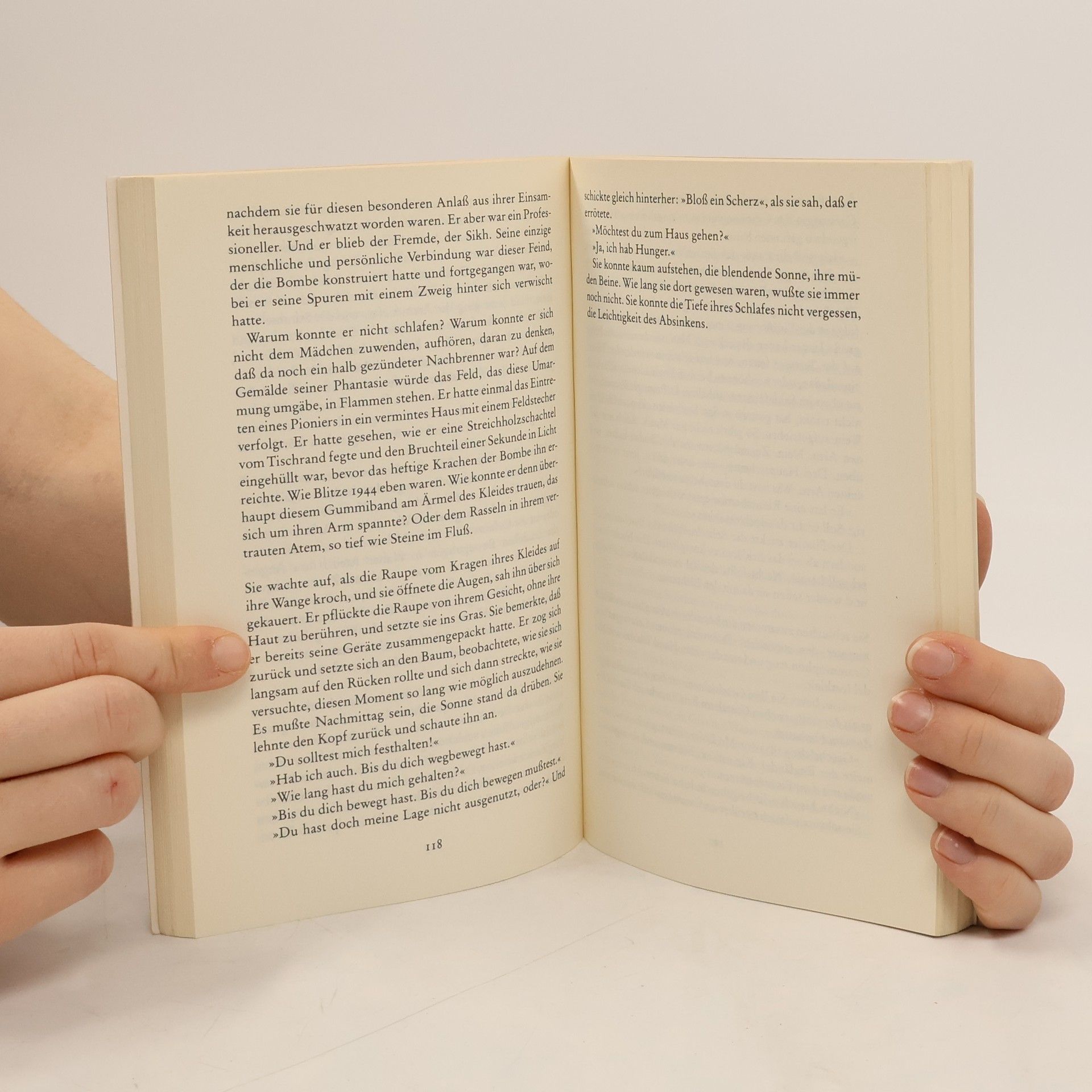 Die Lektüre von Michael Ondaatjes Werk ist ebenso lohnenswert wie der Kinofilm. Der Roman erzählt von vier Personen, die 1945 in einer zerbombten Villa in der Toskana gestrandet sind und versuchen, ihr Leben neu zu ordnen. Hana, eine kanadische Krankenschwester, kümmert sich um einen schwer verbrannten Mann, der in der Wüste mit seinem Flugzeug abgestürzt ist. Sie liest ihm aus Rudyard Kipling und Stendhal vor, während sie ihn pflegt. Caravaggio, ein ehemaliger Dieb, der im Krieg verletzt wurde, sucht Hana auf, um sie zu beschützen, da sie sich aus früheren Zeiten kennen. Kip, ein indischer Bombenentschärfer, gesellt sich zu ihnen, kämpft mit den Schrecken des Krieges und kehrt schließlich in seine Heimat zurück. Jeder Charakter trägt die Narben des Krieges und findet in der Villa einen Ort der Zuflucht. Ondaatje nutzt Rückblenden und Traumsequenzen, um die erlittenen Wunden zu schildern, ohne jedoch den Leser mit einem unzusammenhängenden Puzzle zu überfordern. Die Erzählungen des „englischen Patienten“ sind poetisch und eindringlich, besonders die Beschreibungen der Wüste und ihrer Nomaden. Der Roman fordert den Leser zur Konzentration auf, um seine Poesie zu entfalten. Es ist ein kunstvolles Werk, das in sanften Pastelltönen und verschwommenen Konturen erstrahlt, und für Fans von Ondaatje ist die Verbindung zu „In der Haut eines Löwen“ ein weiterer Anreiz.