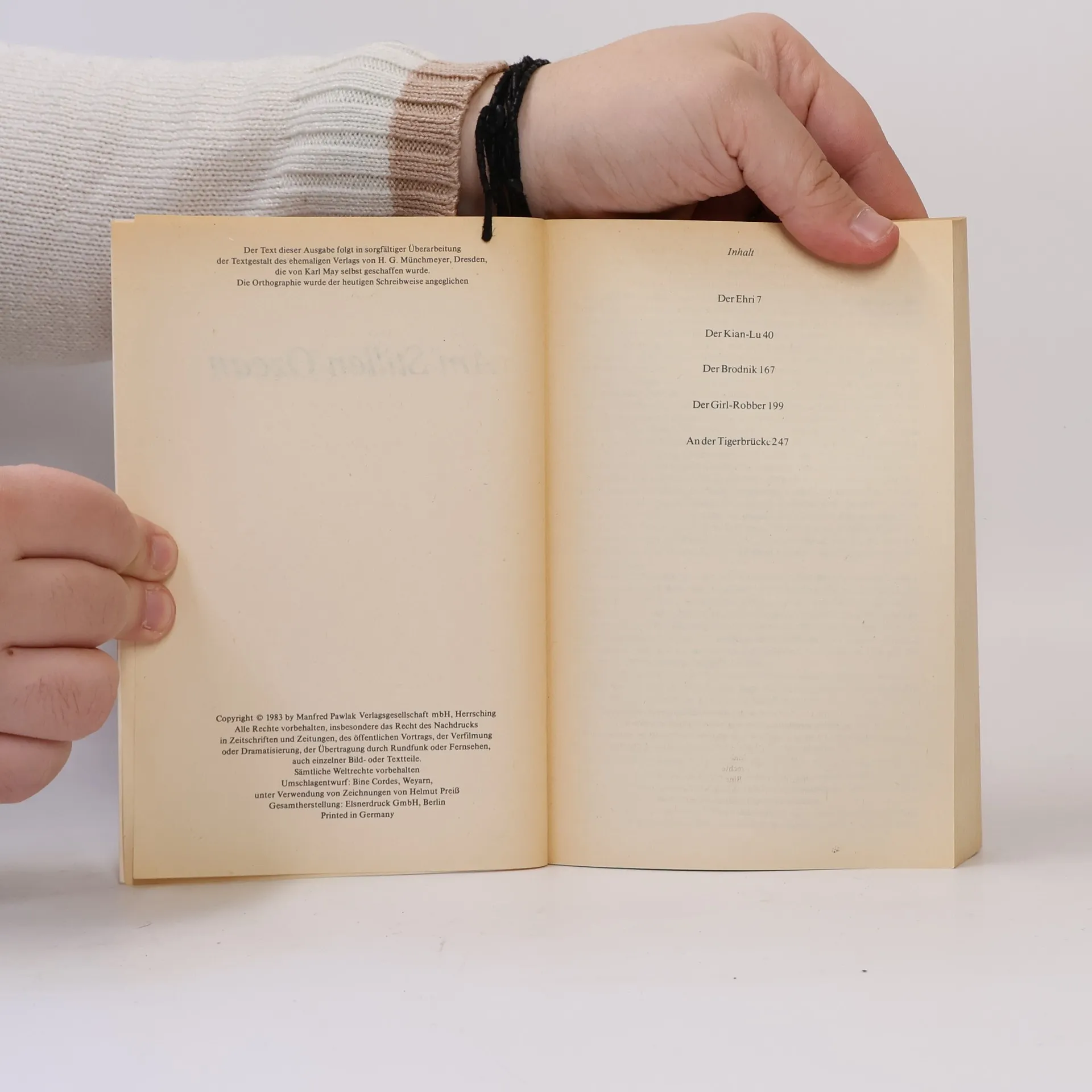 Die spannenden Abenteuer um den "Ehri" und den "Kiang-lu" geben ein farbiges Bild von der Südsee und vom Reich der Mitte. Nach einer Episode in Russland führt der Reiseweg nach Ceylon und in den Indischen Ozean. Der Band enthält folgende Erzählungen: 1.) Im Zeichen des Drachen 2.) Die Piraten des indischen Meeres