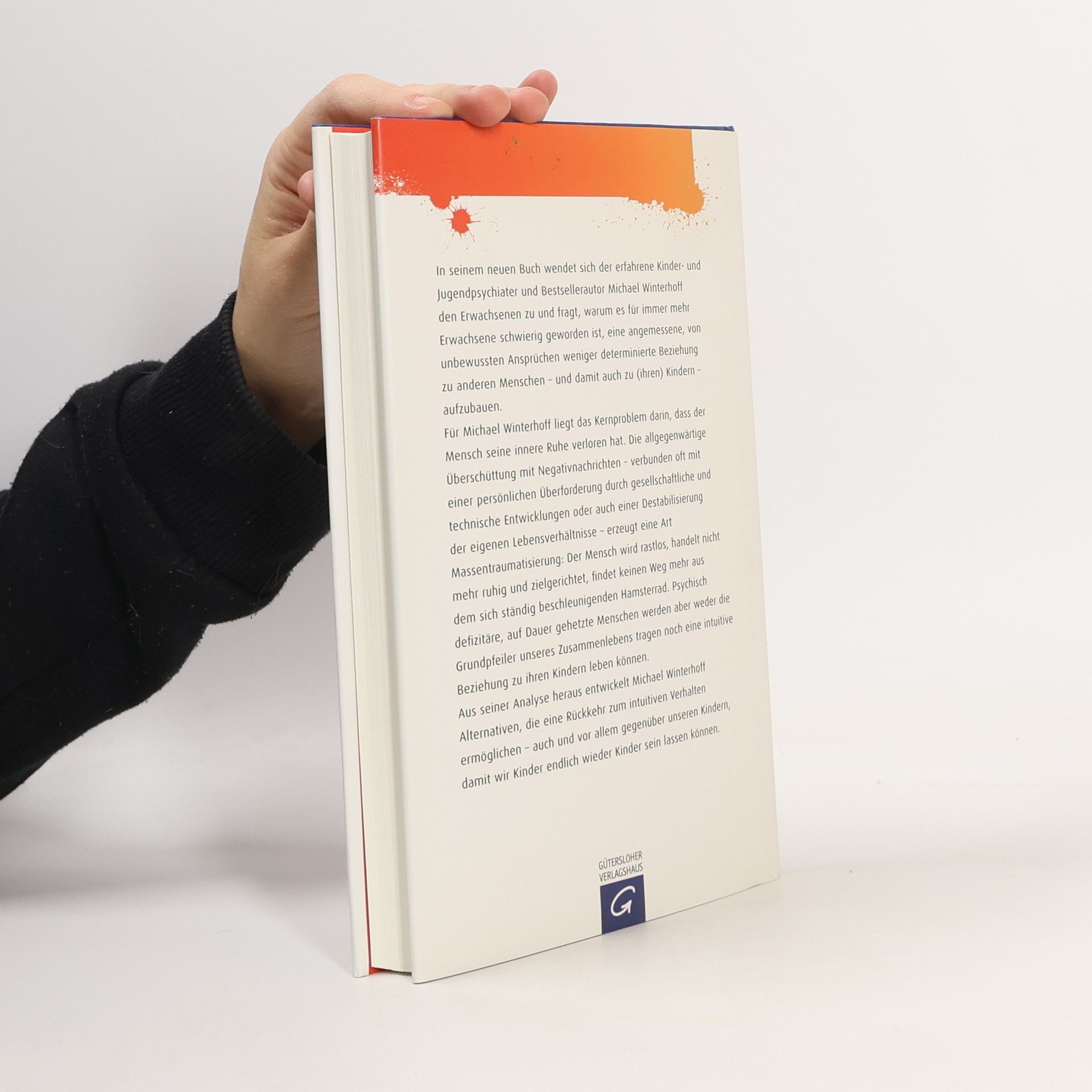 Die Rückkehr zur Intuition – damit Kinder wieder Kinder sein dürfen In seinem neuen Buch wendet sich der erfahrene Kinder- und Jugendpsychiater und Bestsellerautor Michael Winterhoff den Erwachsenen zu und fragt, warum es für immer mehr Erwachsene nicht mehr möglich ist, eine angemessene, von unbewussten Belastungen freie Beziehung zu anderen Menschen – und damit auch zu (ihren) Kindern – aufzubauen. Für Winterhoff liegt das Kernproblem darin, dass der Mensch seine innere Ruhe verloren hat. Die allgegenwärtige Penetration mit Negativnachrichten – verbunden mit einer vielfachen persönlichen Überforderung durch gesellschaftliche und technische Entwicklungen sowie einer Destabilisierung der eigenen Lebensverhältnisse - erzeugt eine Art Massentraumatisierung: Der Mensch wird rastlos, handelt nicht mehr ruhig und zielgerichtet, findet keinen Weg mehr aus dem sich ständig beschleunigenden Hamsterrad. Psychisch defizitäre, auf Dauer gehetzte Menschen aber werden die Grundpfeiler unseres Zusammenlebens nicht mehr tragen können.Dabei zerstört Winterhoff zwar das Trugbild einer grenzenlosen Freiheit, in der wir uns heute wähnen, weist aber auch Wege aus dem Dilemma auf. Aus seiner Analyse heraus entwickelt er Alternativen, die eine Rückkehr zum intuitiven Verhalten ermöglichen – auch und vor allem gegenüber unseren Kindern, damit Kinder endlich wieder Kinder sein dürfen.