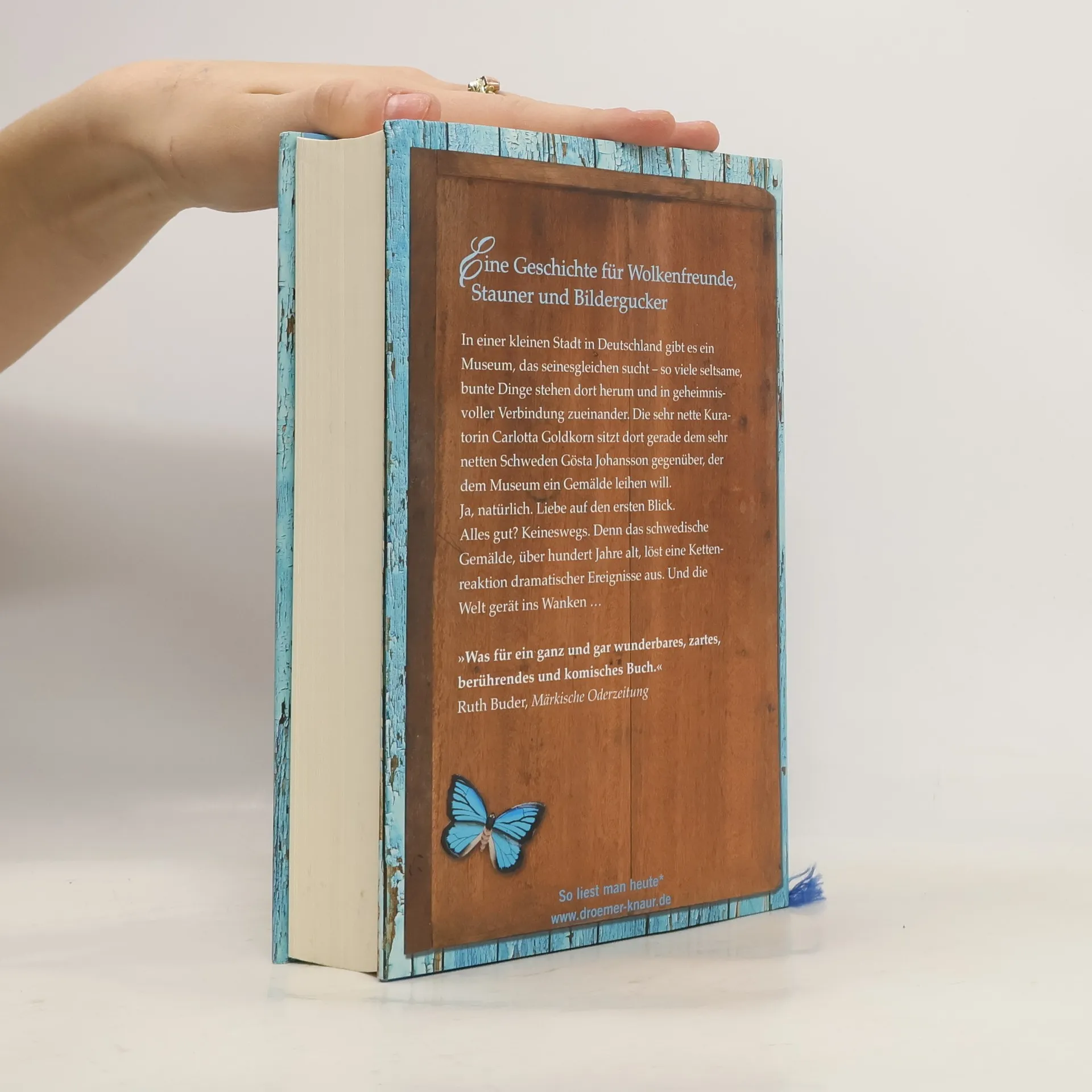 In einer hübschen kleinen deutschen Stadt gibt es ein Museum, das seinesgleichen sucht, so viele seltsame Exponate stehen dort herum und in geheimnisvoller Verbindung zueinander. Carlotta Goldkorn, die nette, überarbeitete Kuratorin, bereitet dort gerade die nächste Ausstellung vor und sitzt zu diesem Zweck dem Stockholmer Literaturprofessor Gösta Johansson gegenüber, der dem Museum ein Gemälde leihen will. Ja, natürlich. Liebe auf den ersten Blick. Und gleich darauf: eine Kettenreaktion aufwühlender Ereignisse mit (nicht gleich erkennbarem) Glückspotential: ein Paar fürs Leben, ein gelüftetes Familiengeheimnis, ein riesiger Kunstfälschungsskandal, ein gerettetes Kind und mehrere Leute, die endlich zu sein wagen, wer sie sind.
