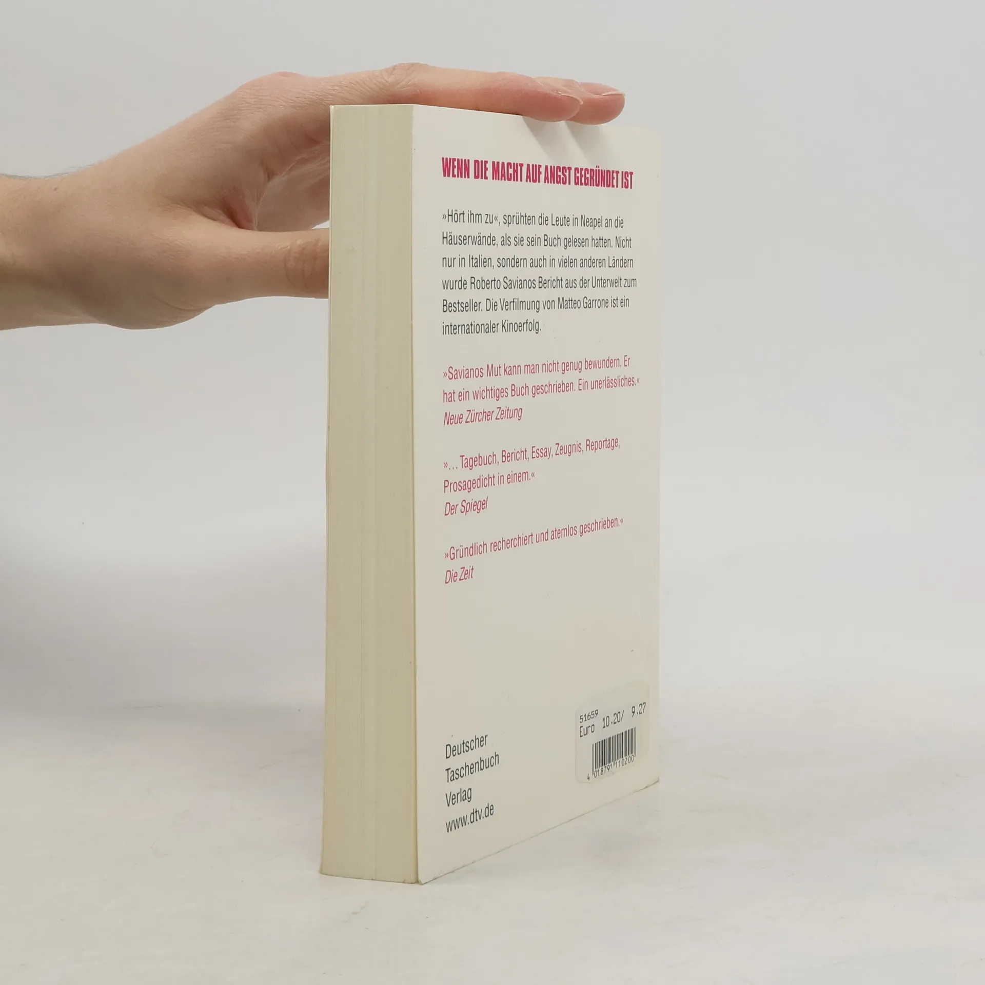 Die süditalienische Camorra ist tief im internationalen Drogenhandel verwickelt, transportiert große Mengen Giftmüll und dominiert den Textil- sowie Zementhandel. Ihre Aktivitäten erstrecken sich bis nach Deutschland, Schottland und China und fordern jährlich hunderte von Opfern. Der junge Journalist Roberto Saviano, selbst aus Neapel stammend, hat unter Lebensgefahr vor Ort recherchiert und ein eindringliches Buch verfasst, das die Macht der Camorra beleuchtet. Diese beruht auf Schweigen, dem Saviano die Kraft des Wortes entgegensetzt. Aufgrund seiner Enthüllungen lebt er seitdem versteckt und wird von Bodyguards beschützt. Für sein engagiertes Schreiben erhielt Saviano 2009 den Geschwister-Scholl-Preis, nicht nur für sein Buch, sondern für seinen gesamten Beitrag zur Aufklärung über die Verbrechen der Camorra. In seiner Dankesrede thematisiert er den täglichen Kampf gegen die Einschüchterungen und die Notwendigkeit, trotz aller Bedrohungen zu schreiben. Für ihn bedeutet Schreiben, sich nicht von Angst und Verzweiflung besiegen zu lassen und dem eigenen Gewissen treu zu bleiben.