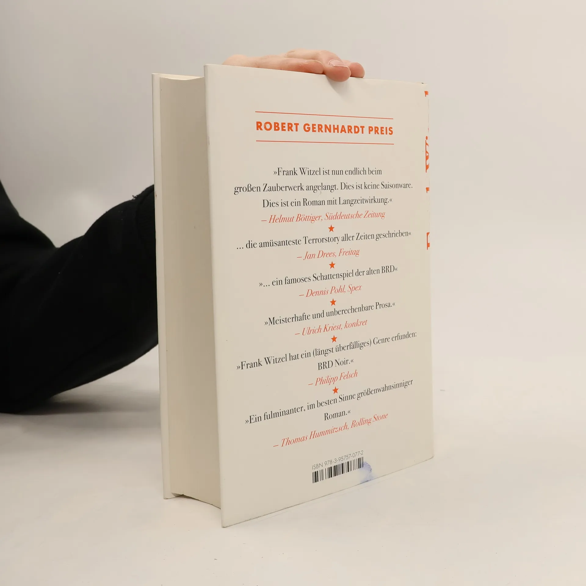 Gudrun Ensslin eine Indianersquaw aus braunem Plastik und Andreas Baader ein Ritter in schwarzglänzender Rüstung? Die Welt des kindlichen Erzählers dieses mitreißenden Romans, der den Kosmos der alten BRD wiederauferstehen lässt, ist nicht minder real als die politischen Ereignisse, die jene Jahre in Atem halten und auf die sich der 13-Jährige seinen ganz eigenen Reim macht. Frank Witzel ist es in dieser groß angelegten fantastischen literarischen Rekonstruktion des westlichen Teils Deutschlands gelungen, ein Spiegelkabinett der Geschichte im Kopf eines Heranwachsenden zu errichten. Erinnerungen an das Nachkriegsdeutschland, Ahnungen vom Deutschen Herbst und Betrachtungen der aktuellen Gegenwart entrücken ihn dabei immer weiter seiner Umwelt. Das dichte Erzählgewebe ist eine explosive Mischung aus Geschichten und Geschichte, Welterklärung, Reflexion und Fantasie: ein detailbesessenes Kaleidoskop aus Stimmungen einer Welt, die ebenso wie die DDR 1989 Geschichte wurde.